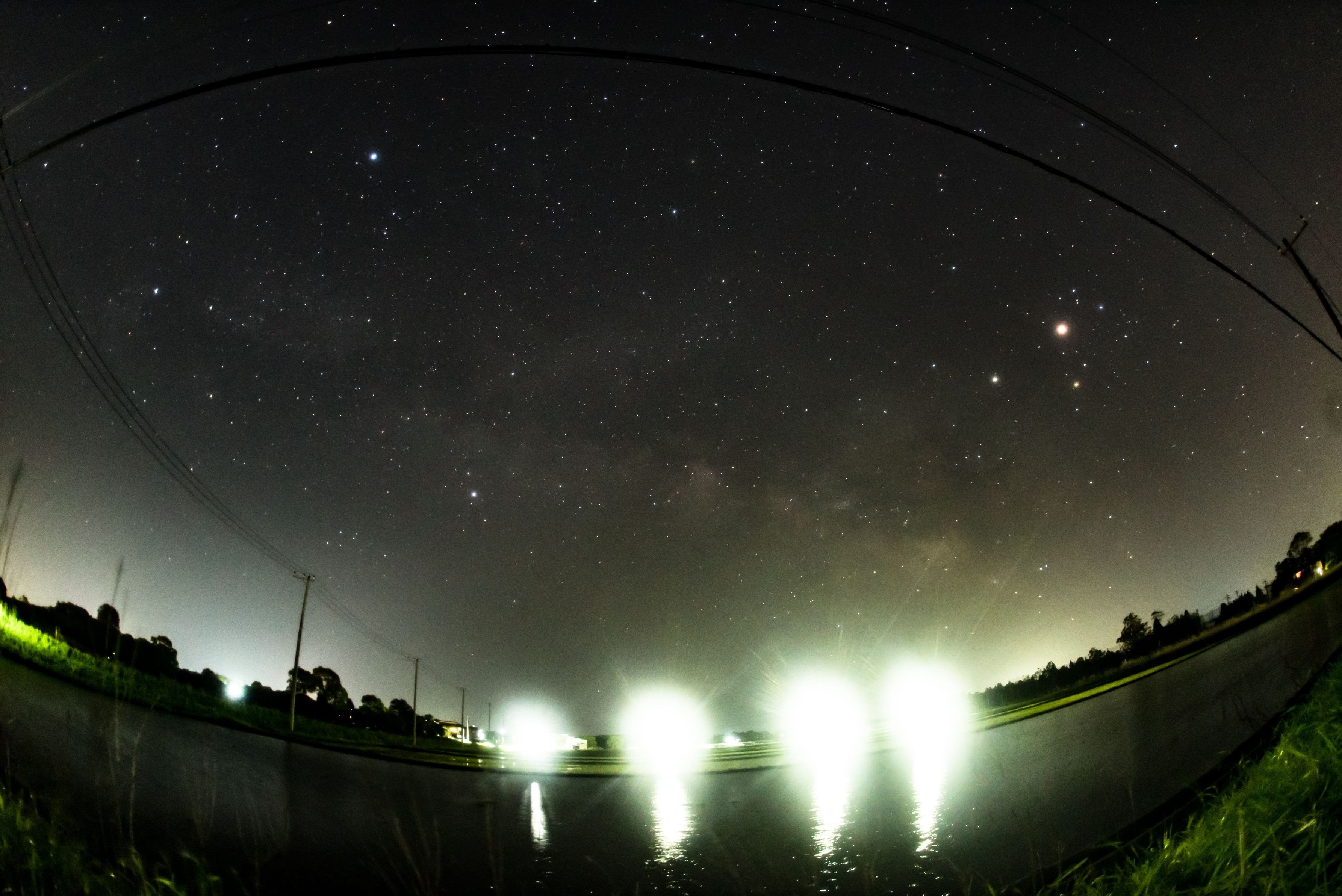九十九里浜近くの田んぼから、かすかな天の川が撮れました。 嵐の後で星が綺麗でした。本当は海まで行けば良かったのですが強風の為断念し、近くの田んぼからの一枚です。 使用レンズ:SIGMA 15mm f2.8 FISHEYE