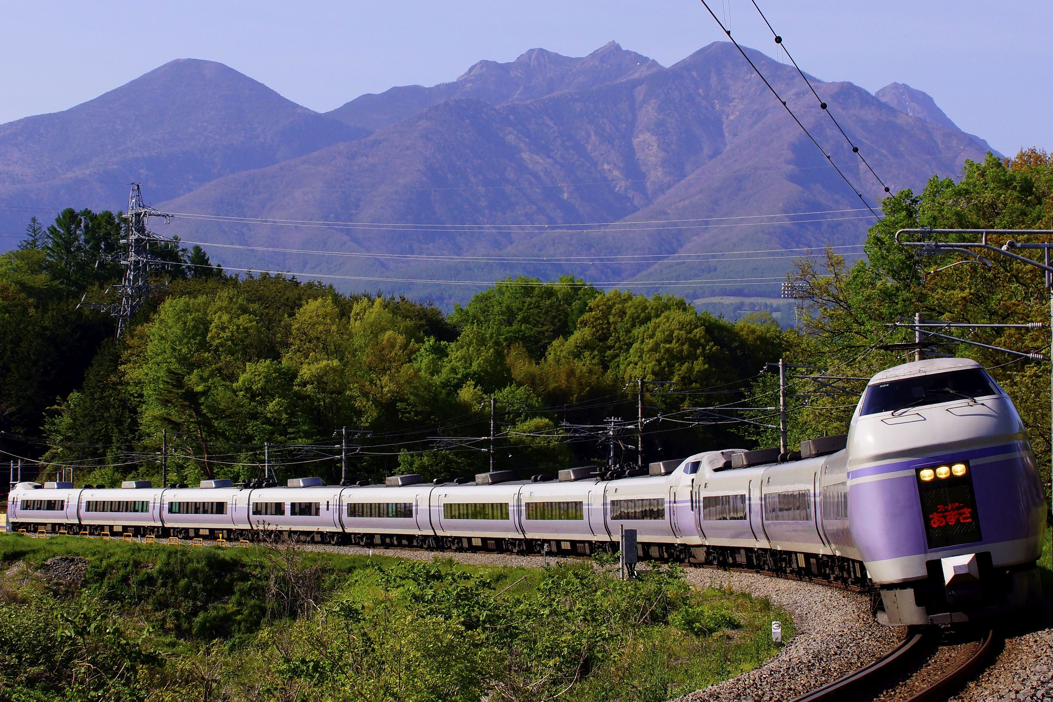 架線の影が入らない時間のスーパーあずさ 定期列車だと一日に一本だけかも知れません。