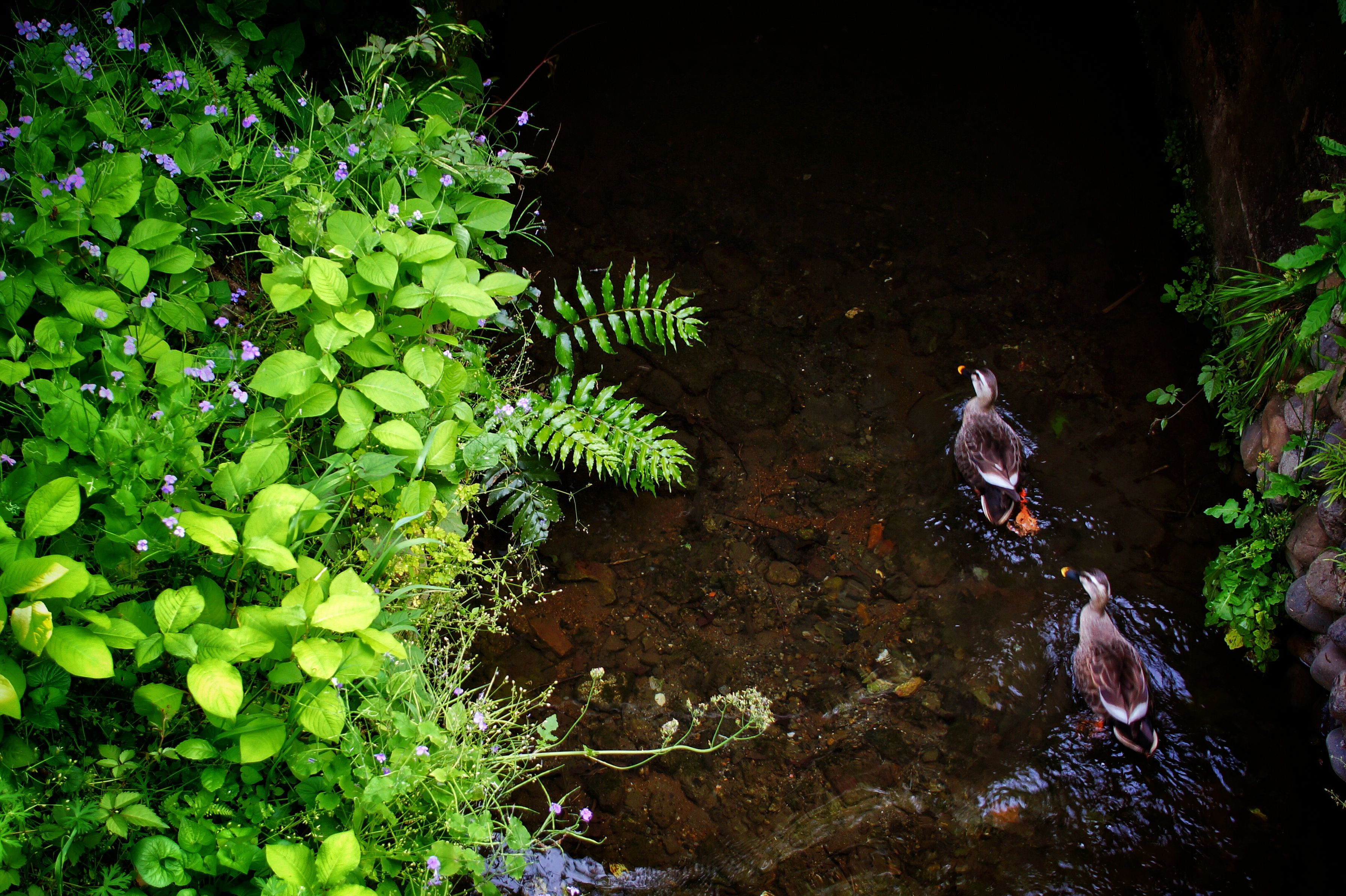 近くの用水路に数年前からいつも2羽仲良く泳ぐカルガモの夫婦?の姿が見られるようになりました。人馴れしていて時々自宅前を2羽で歩いているので驚かされます。