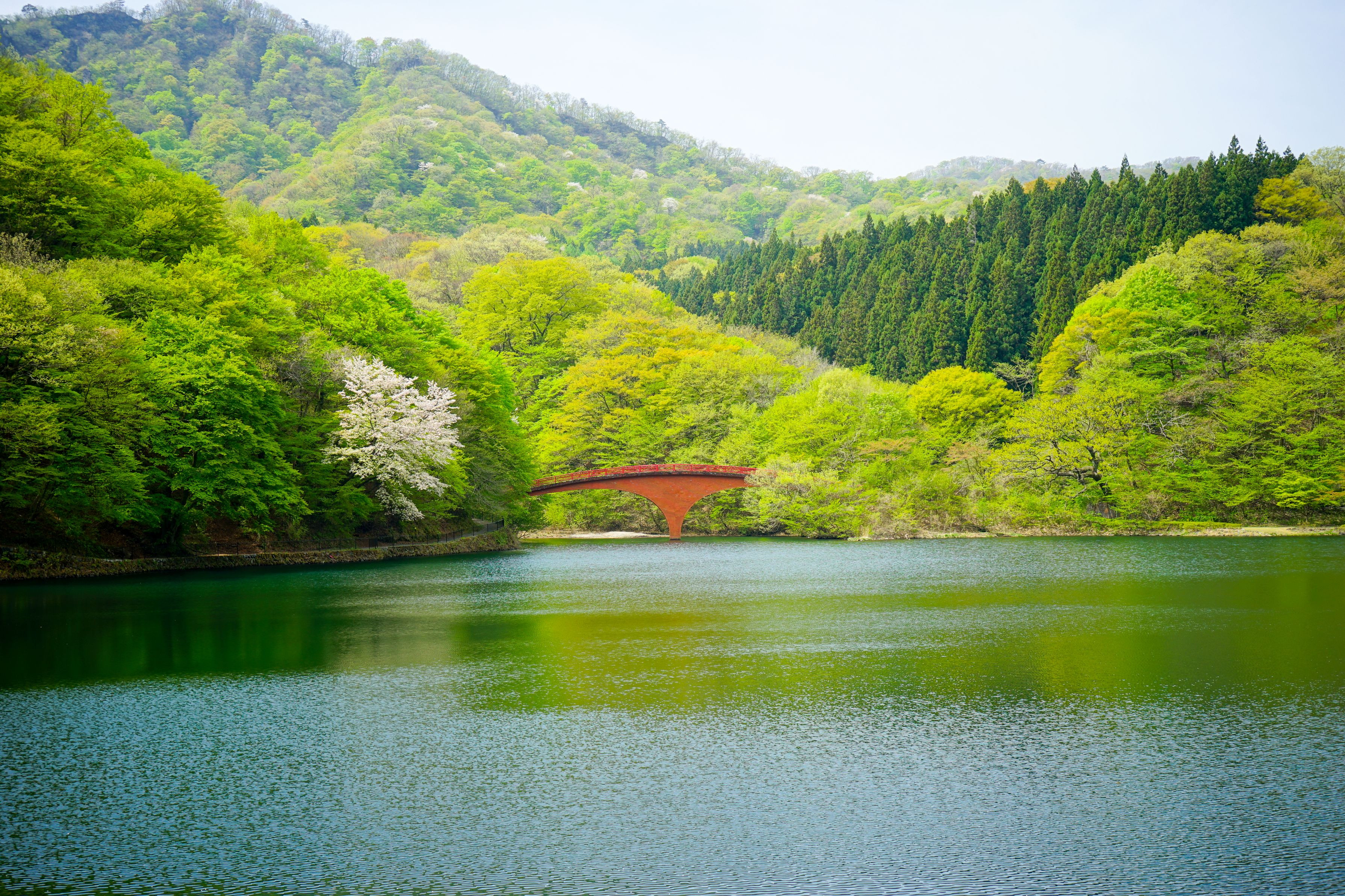 桜と新緑の碓氷湖