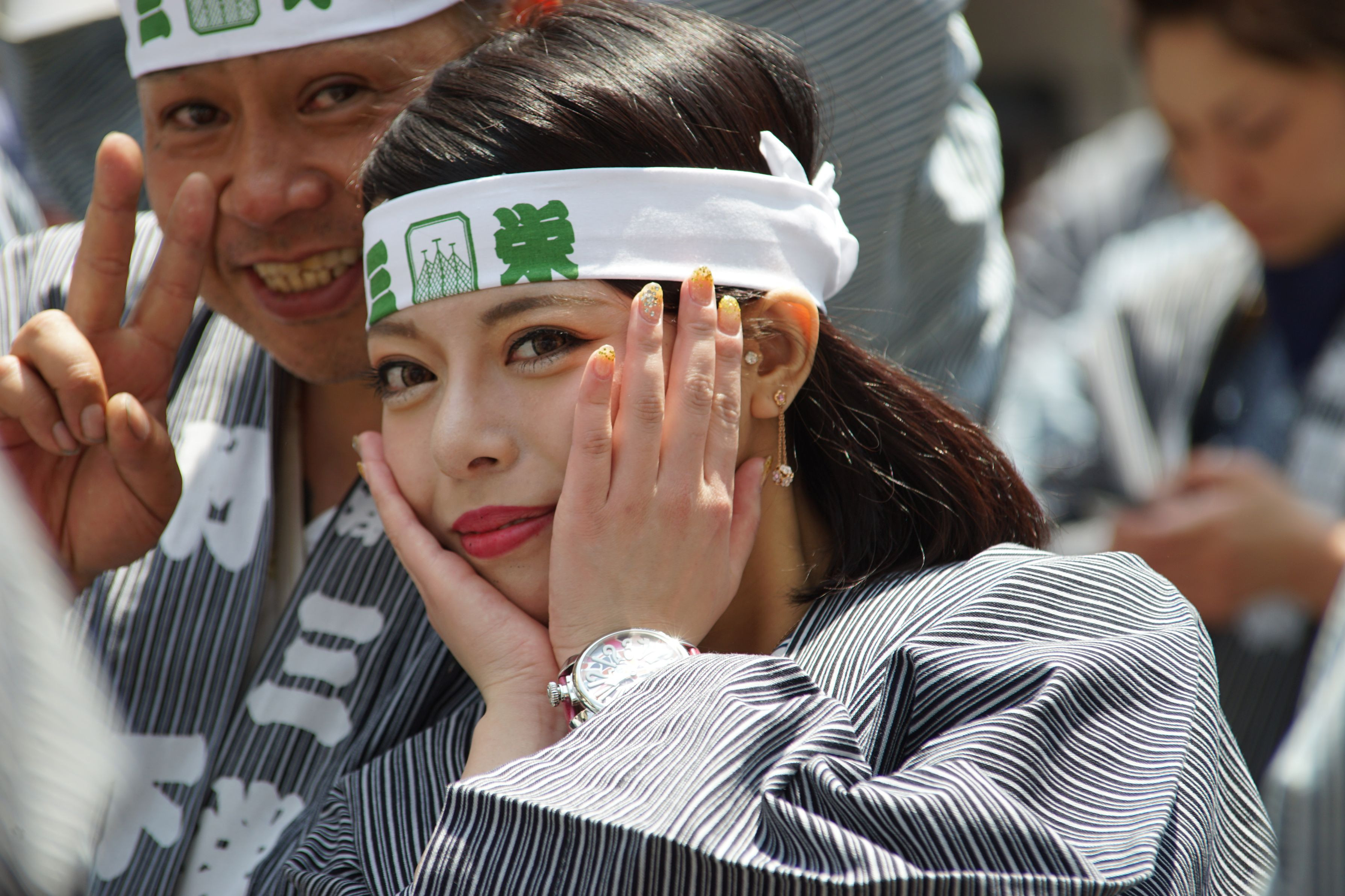浅草の三社祭で乗りが良いギャルに恵まれワンショット。 Ai Nikkor 35-200mm.