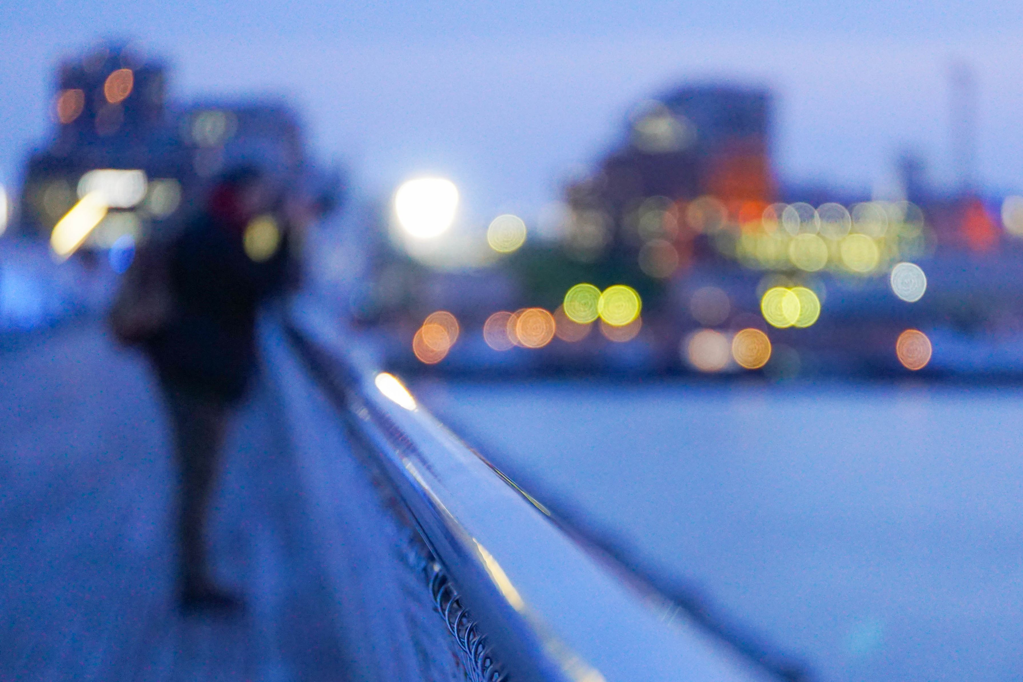 こんな感じに撮ってみました。場所は横浜・大桟橋、奥の白い光は横浜スタジアムのナイター照明です。