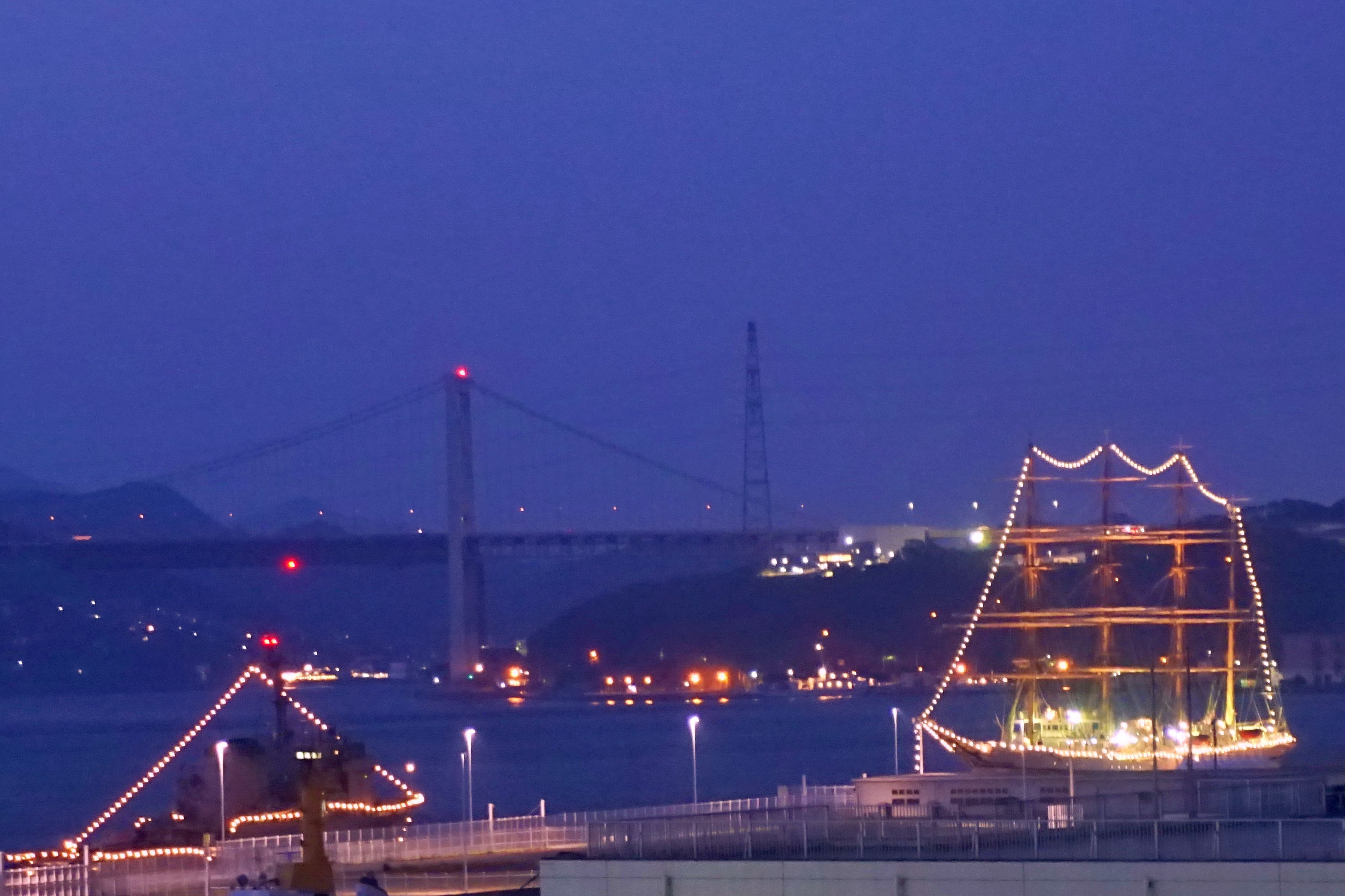 夜前 夕方過ぎ 門司港 バック関門橋です・