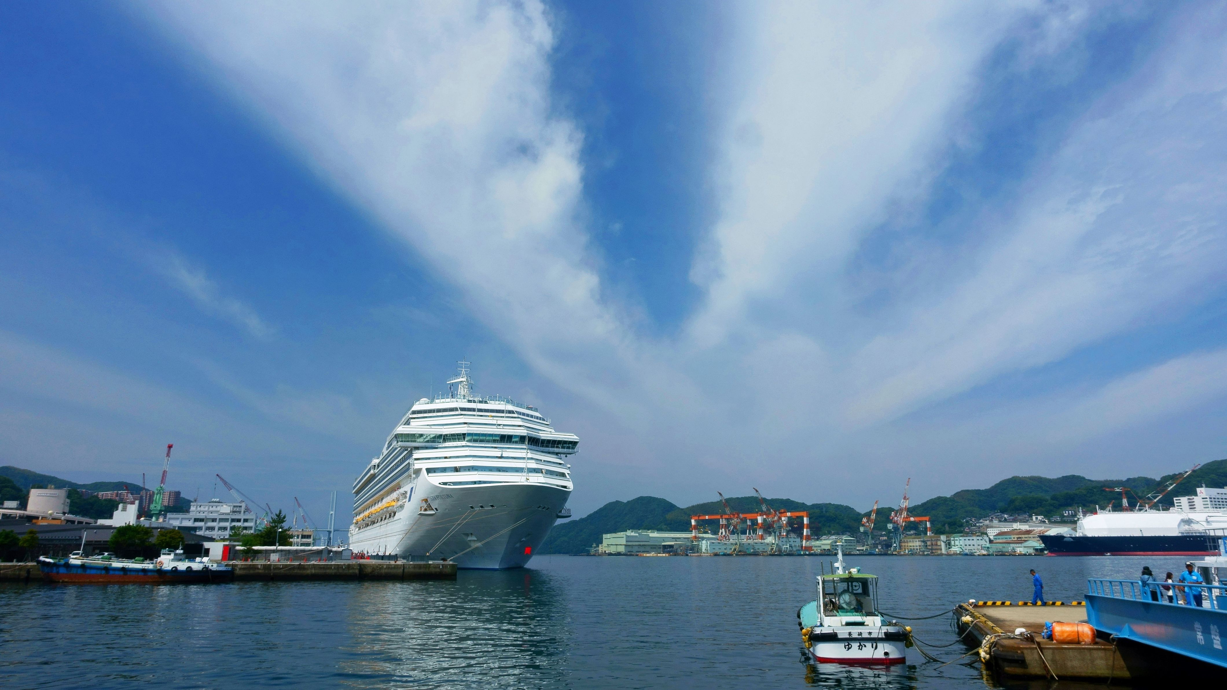 雲が放射線状に伸び、印象的な空でした。 船はCosta Fortuna イタリア船籍だそうです。