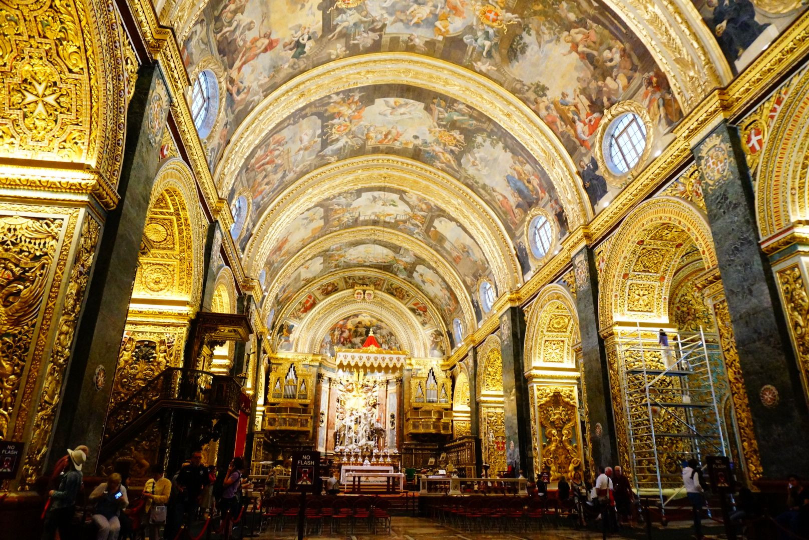 首都ヴァレッタにある聖ヨハネ大聖堂。 建物の外観は質素ですが、なかはご覧の通りの絢爛豪華ぶりです。それなのに不思議と落ち着く空間なのです。