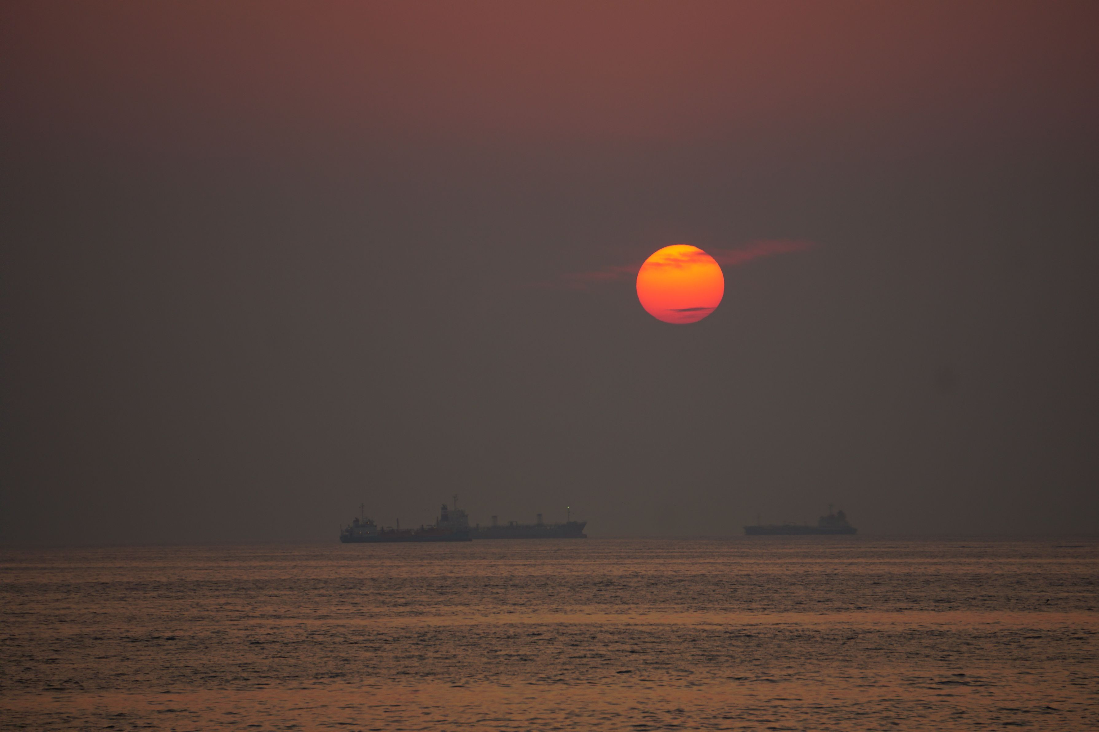 最近丸い夕日を見ることが多いです。PM2.5、黄砂のおかげでしょうか? ゴミも写っていて、投稿して良い写真とは思えませんけど・・・。すみません。