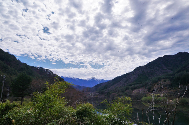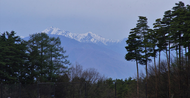 安曇野付近です。 この辺から山はまだ雪景色が残っていました。