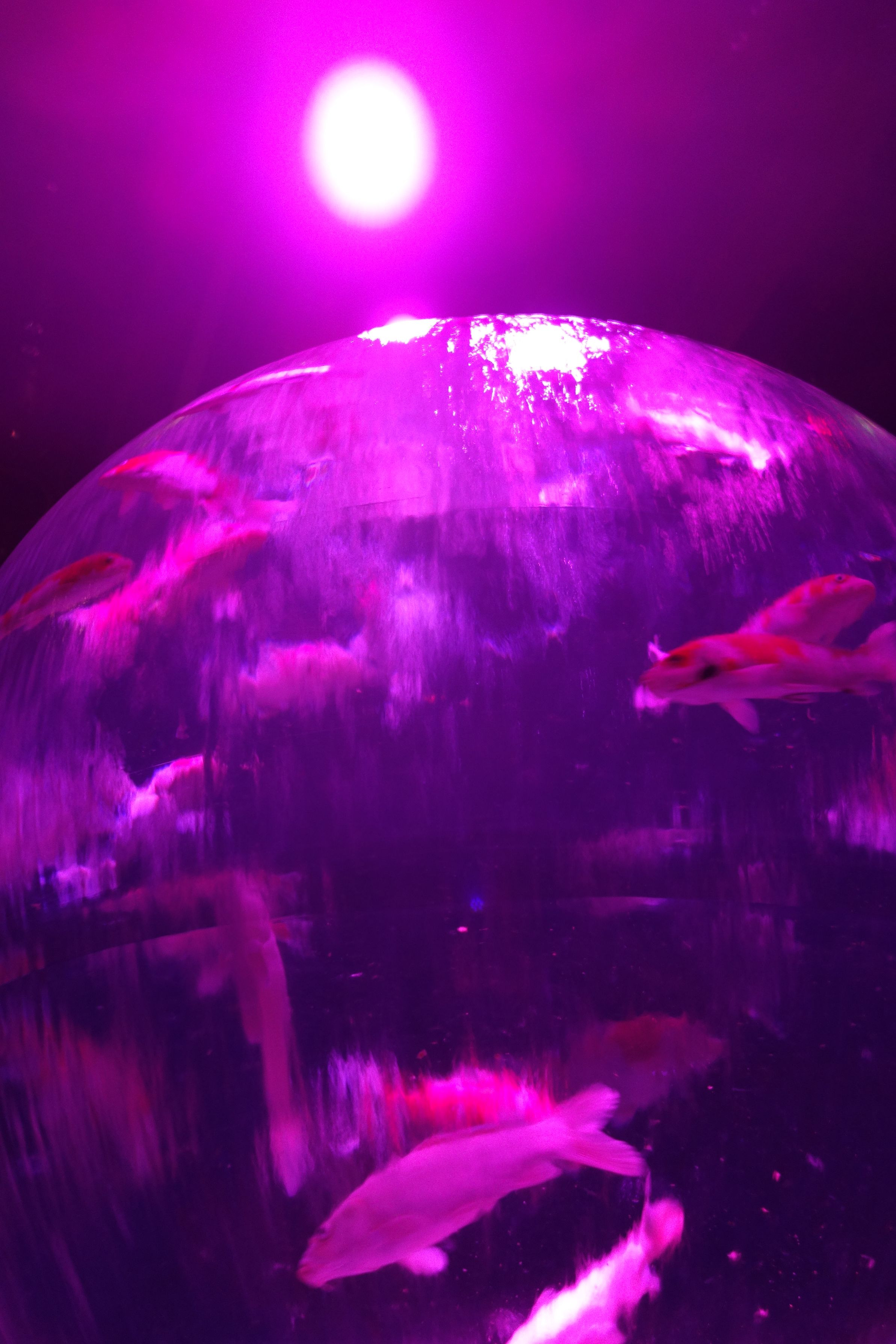 水の星 地球にたとえた球体の水槽 まるで日の出のようですね。