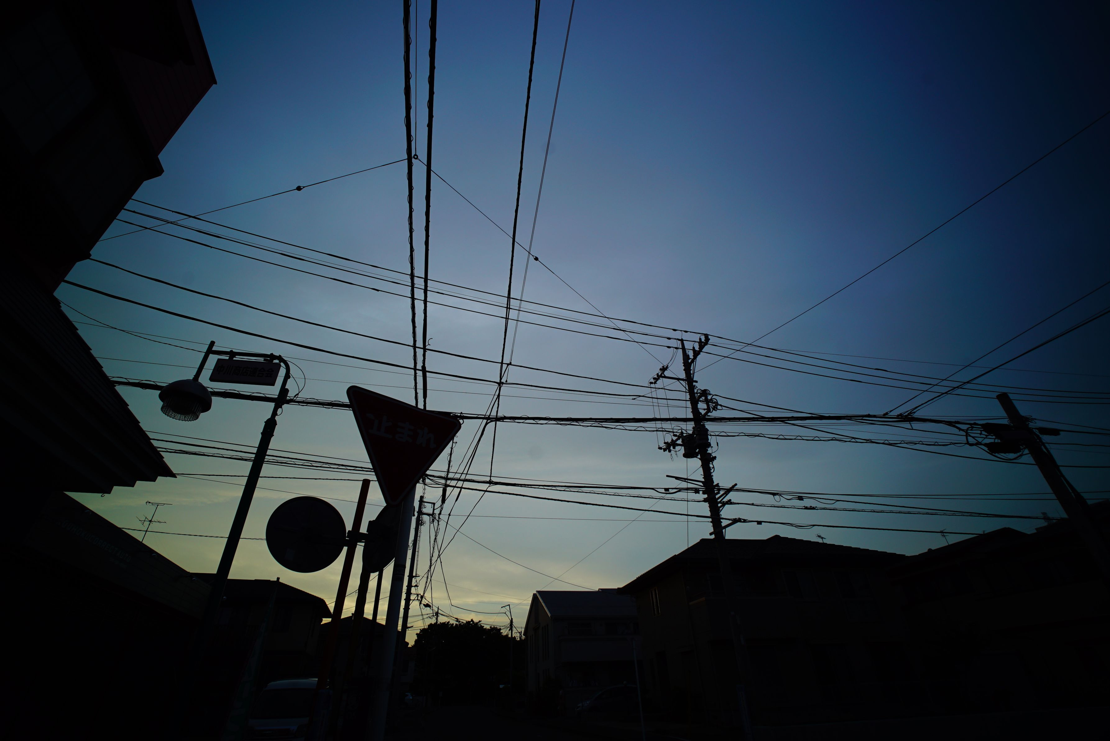 住宅街の標識やら電線やらでゴチャッとした夕暮れ。 そんな空が美しいときもある。 レンズは"Super Wide-Heliar 15mm F4.5 Aspherical II"。