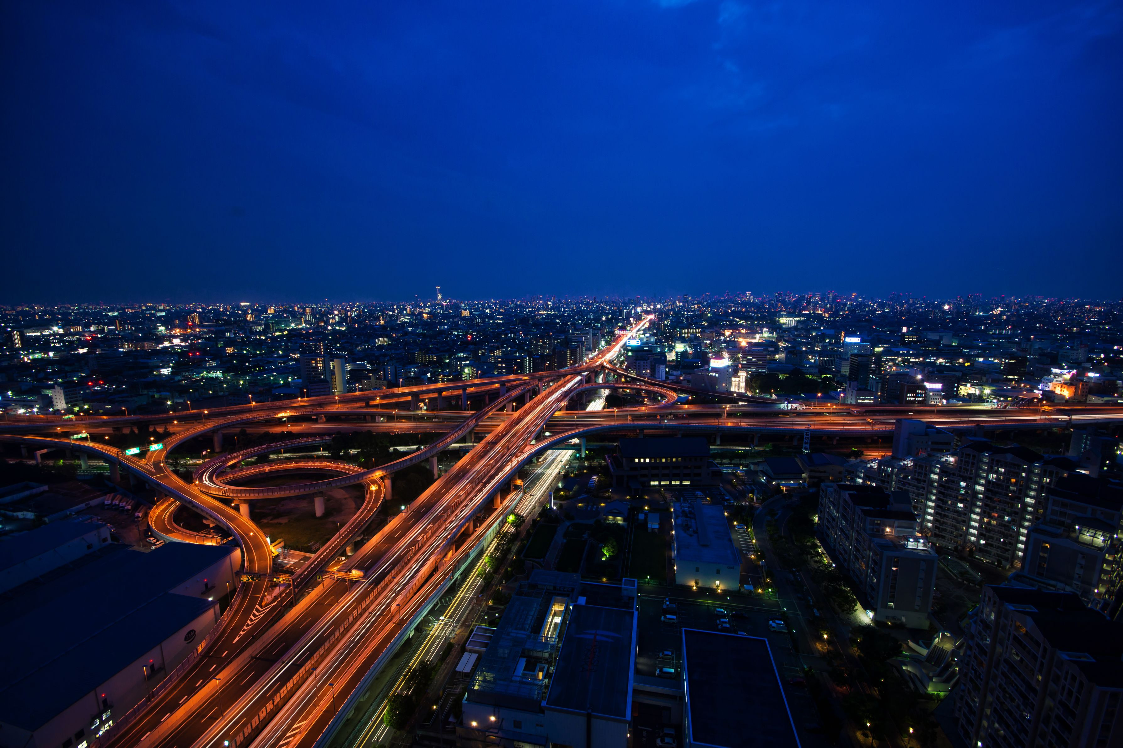 高速道路のジャンクションを高所から撮影した夜景です。 近未来的な雰囲気が気に入ってます。