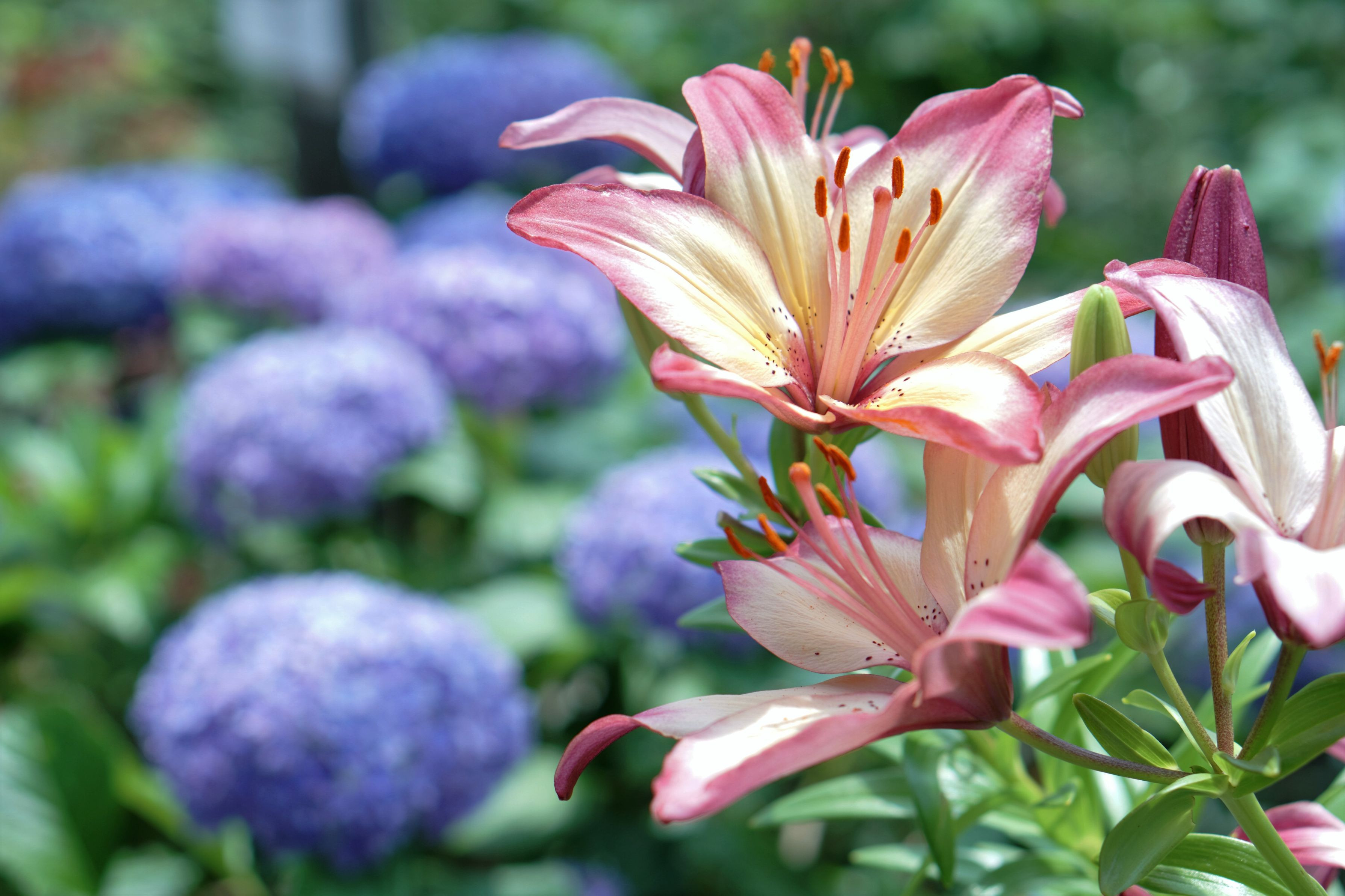 ユリとアジサイのコラボレーション。 どちらも見頃を迎えてました。