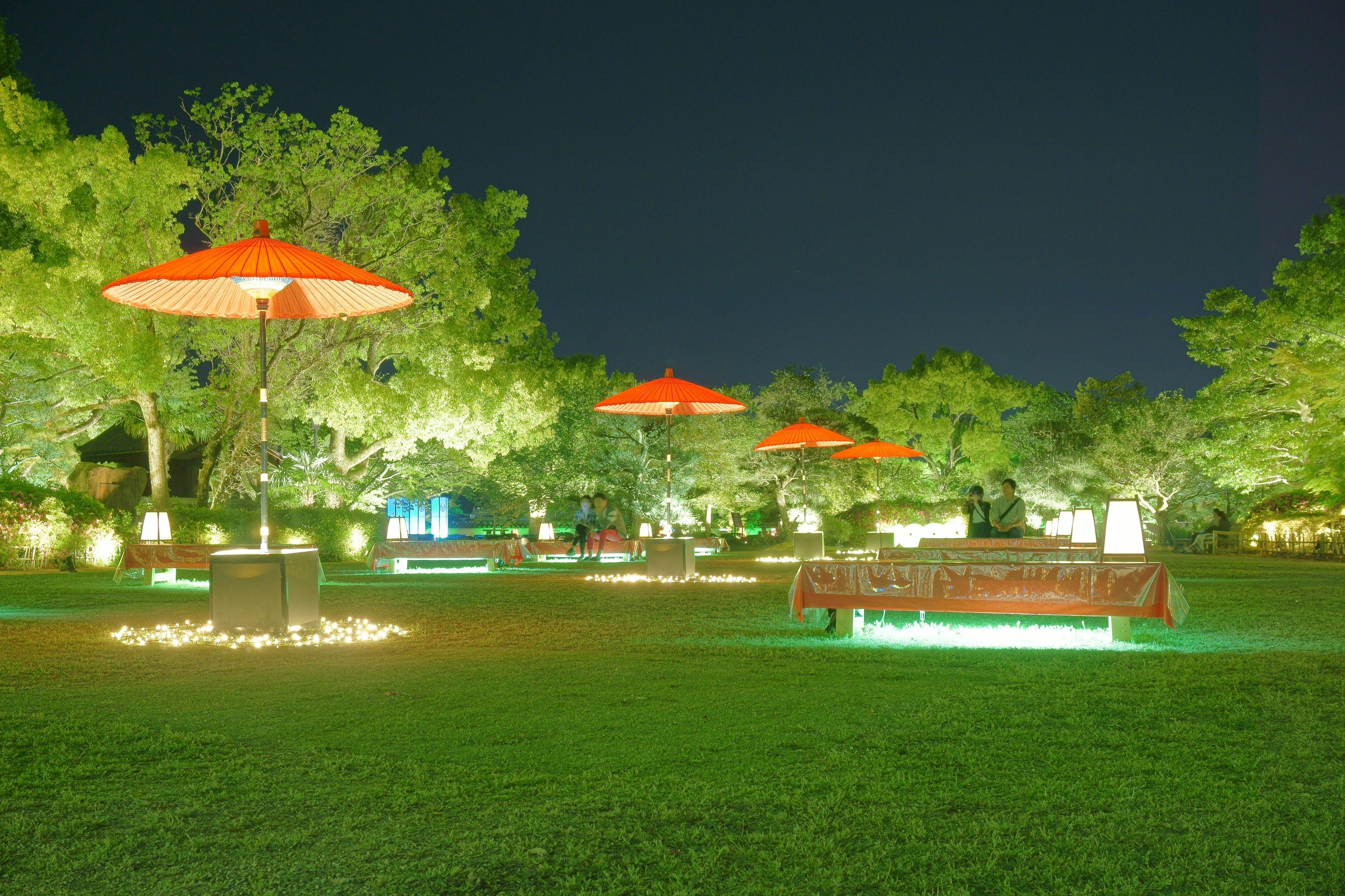 岡山城ライトアップ 岡山城前に設置されている休憩所