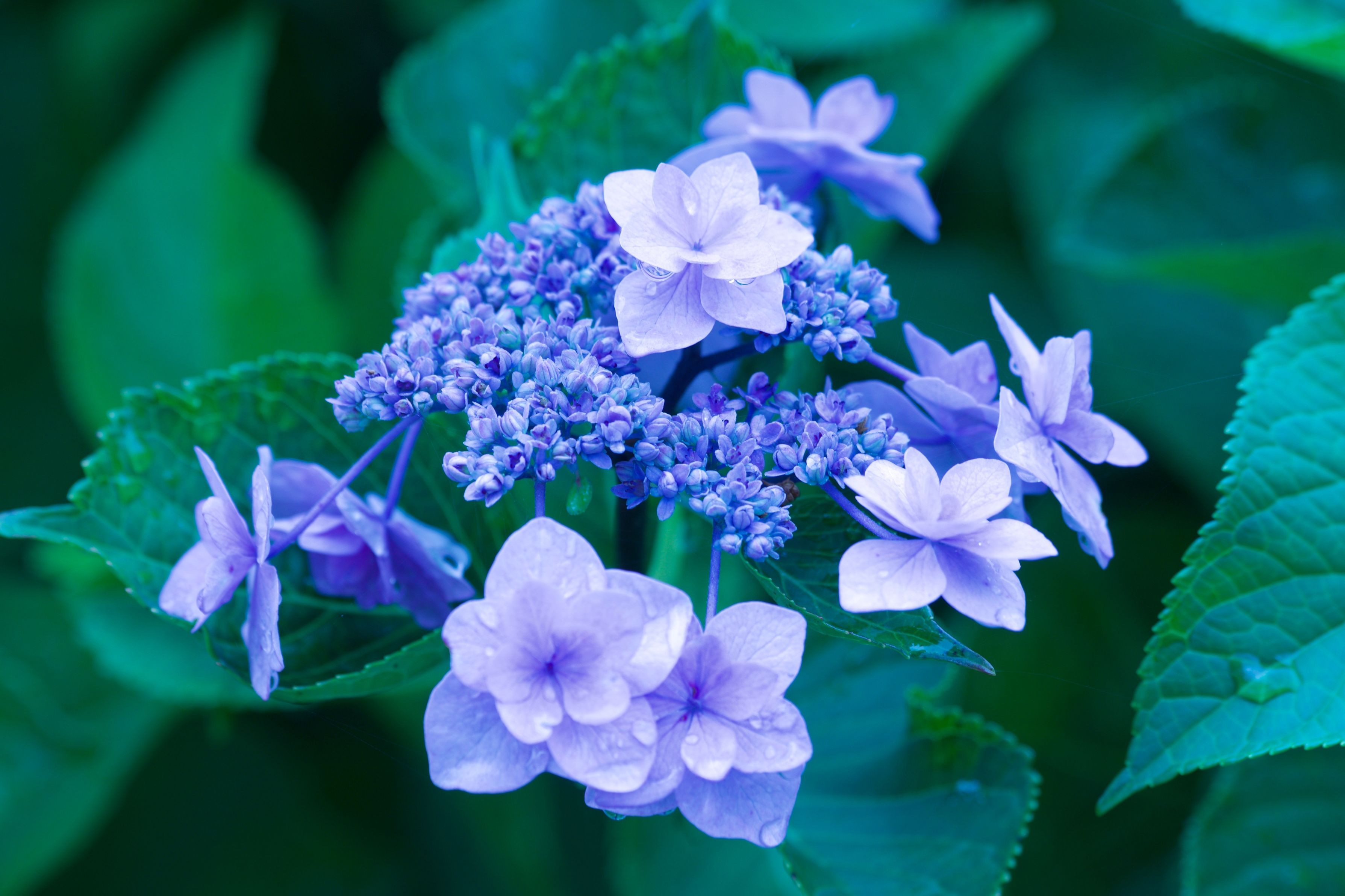 滋賀県守山市芦刈園で撮影しました、この紫陽花に「城ヶ崎の雨」と名前が付いていました、雨上がりに行きましたので名前にふさわしい情景で撮影できました。