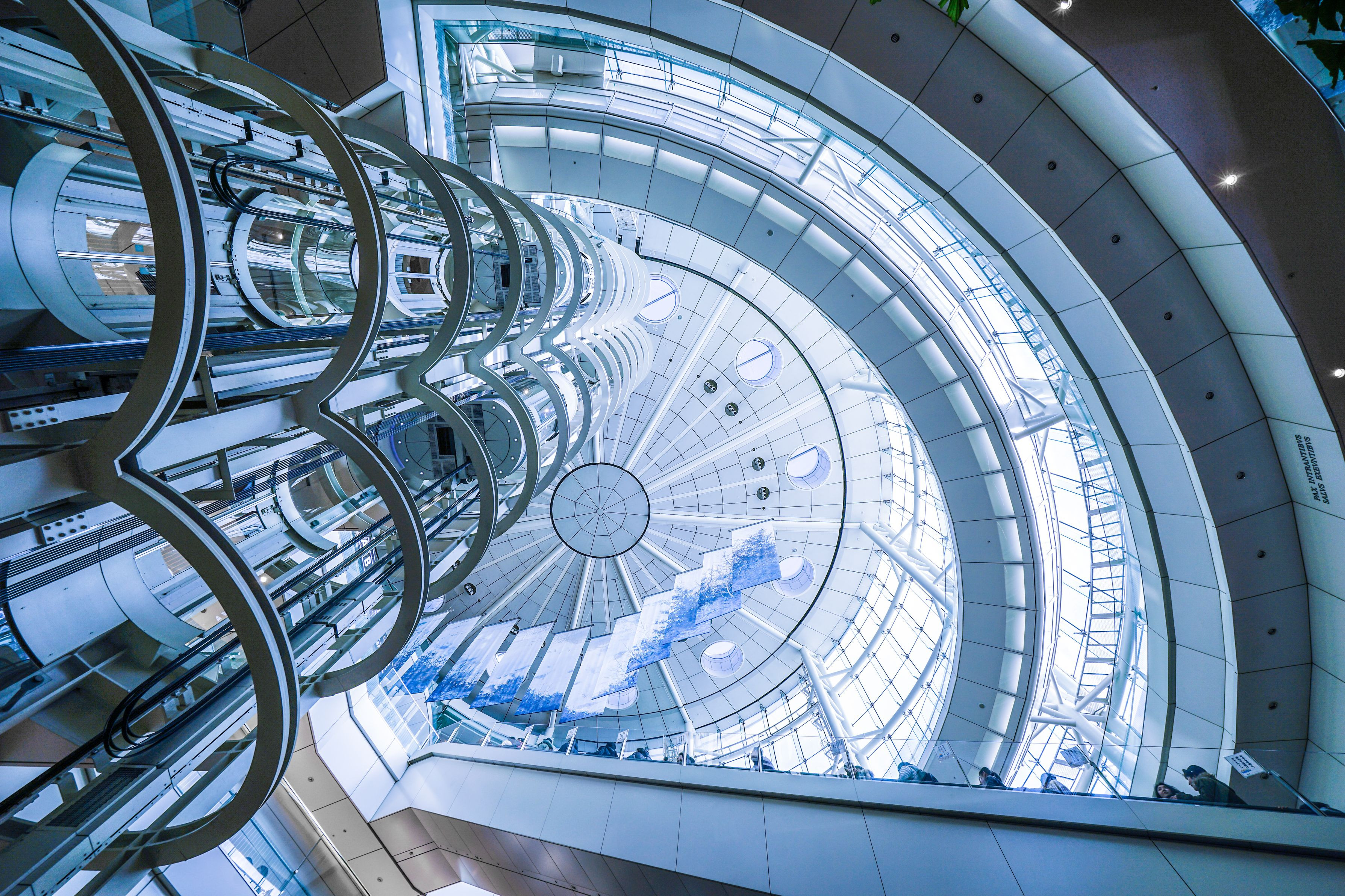羽田空港第2ターミナルビルの吹抜けです。これから空の彼方へ飛んでいくというイメージで、色と明るさを調整しました。