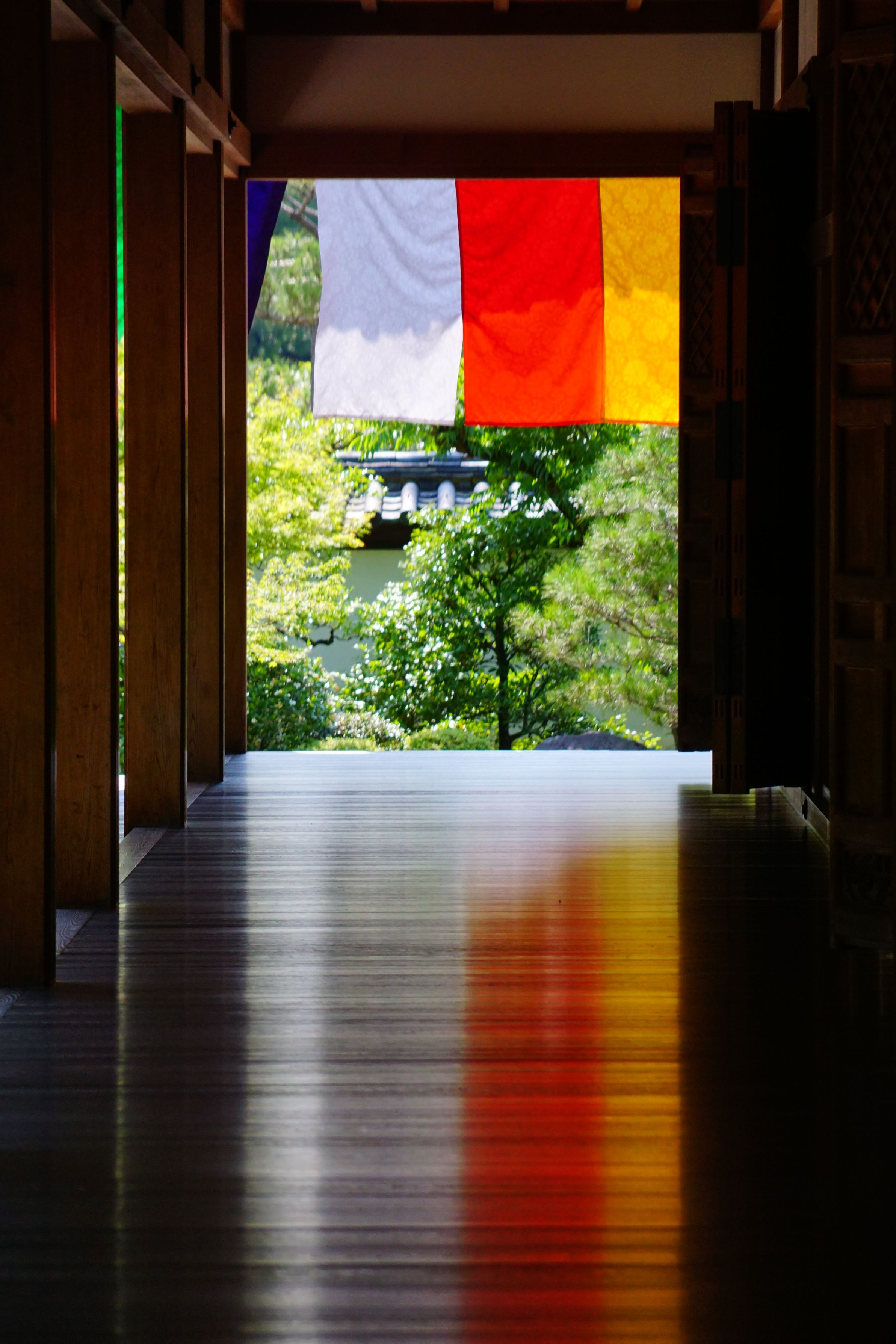 京都・智積院の講堂の廊下です。 五色幕がとてもきれいでした。