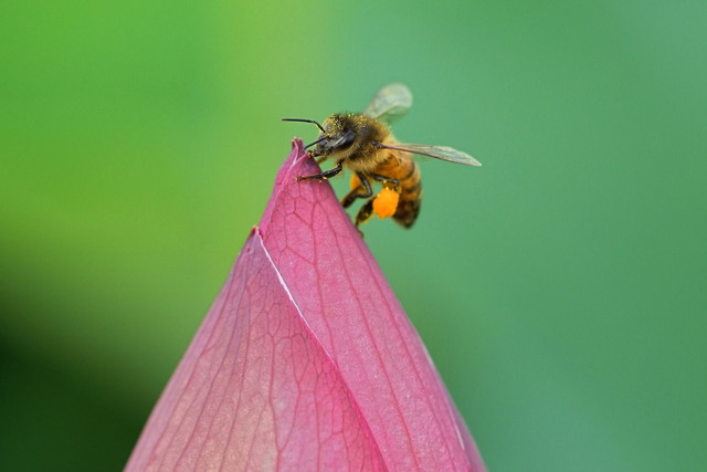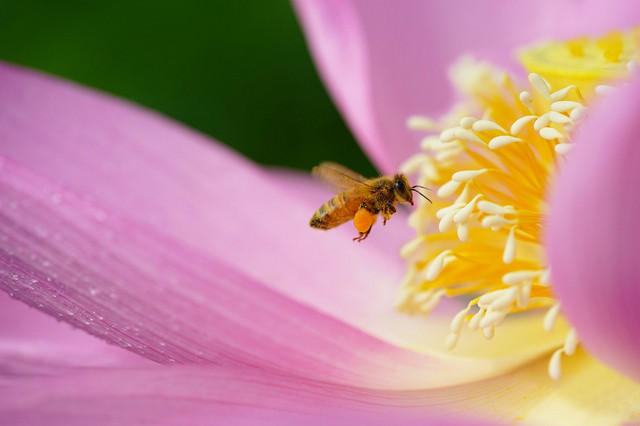 兵庫県加東市にある平池公園で撮影しました。 ミツバチがメインで大賀ハスがおまけ(笑)