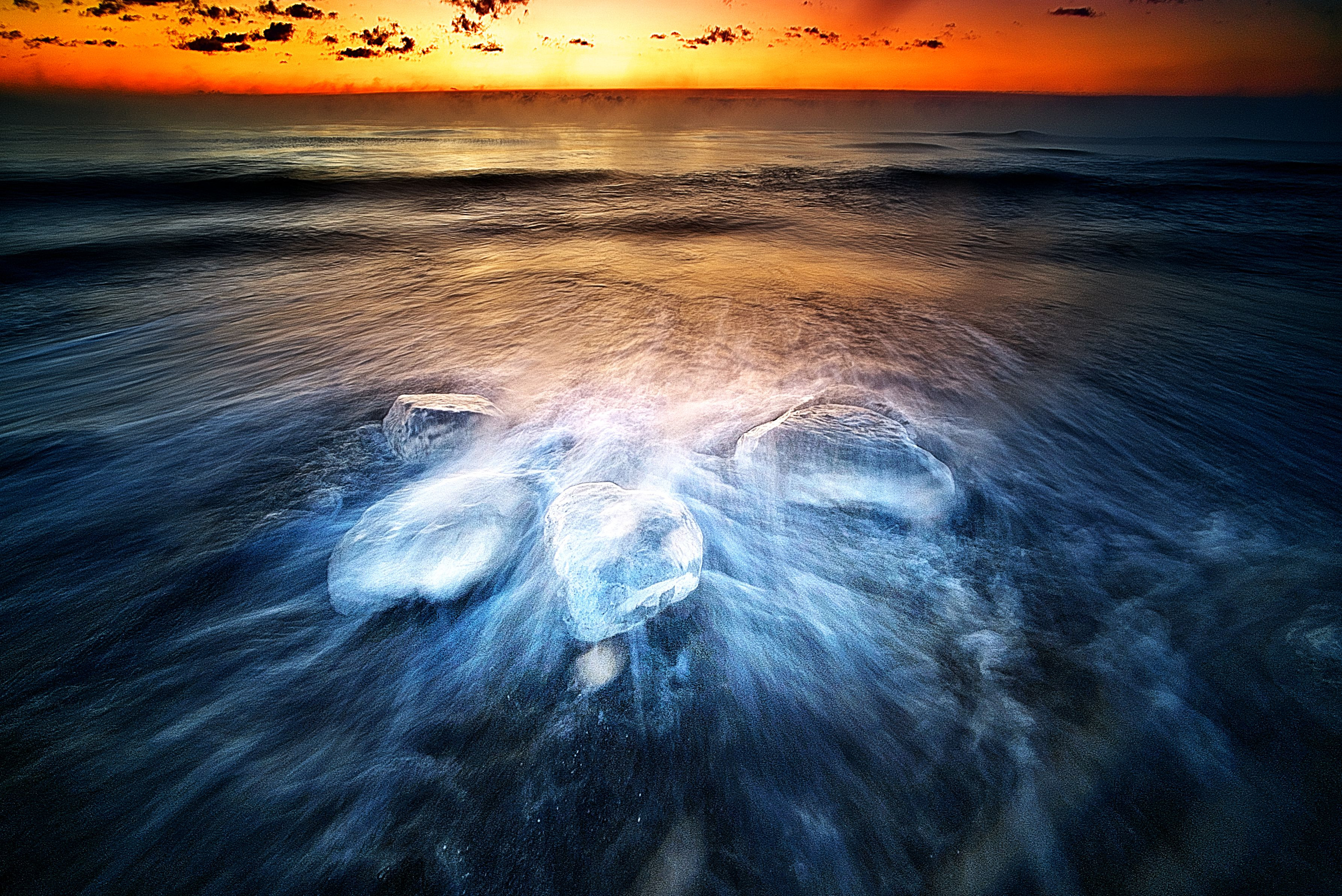 今年の1月31日。極寒の豊頃大津海岸で撮影したジュエリーアイスのスローシャッター作品です。