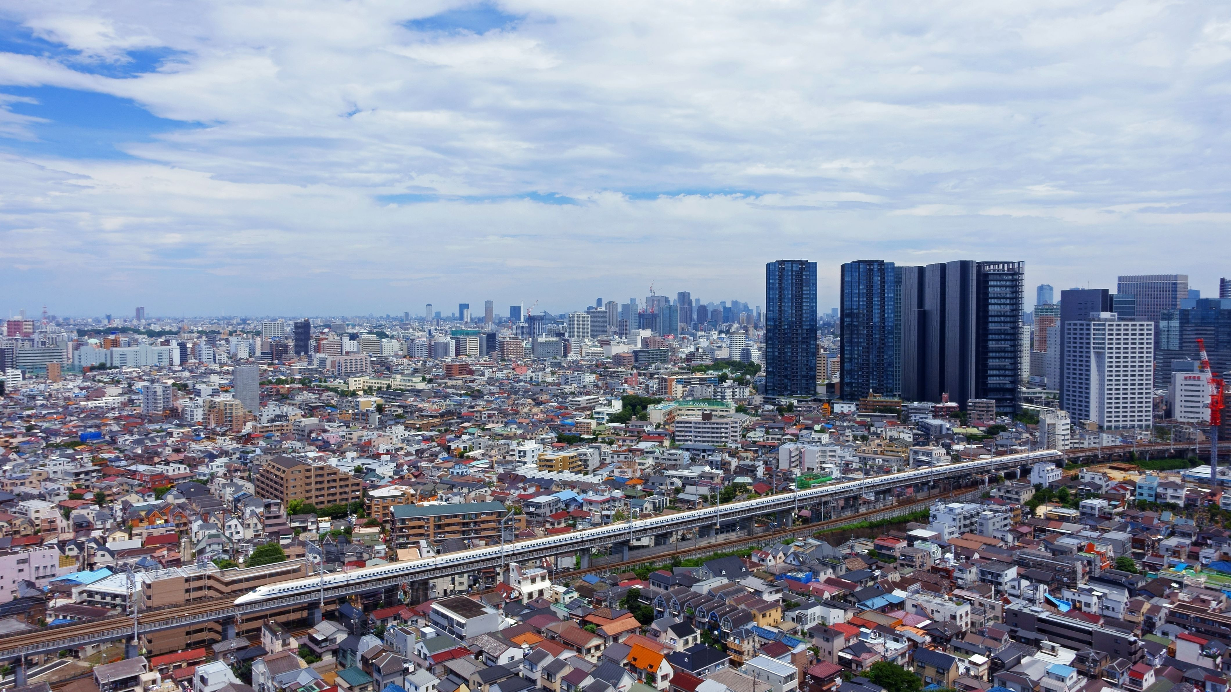 暑くなりました。PLフィルターをつけて、梅雨の晴れ間の空と長い東海道新幹線を撮りました。