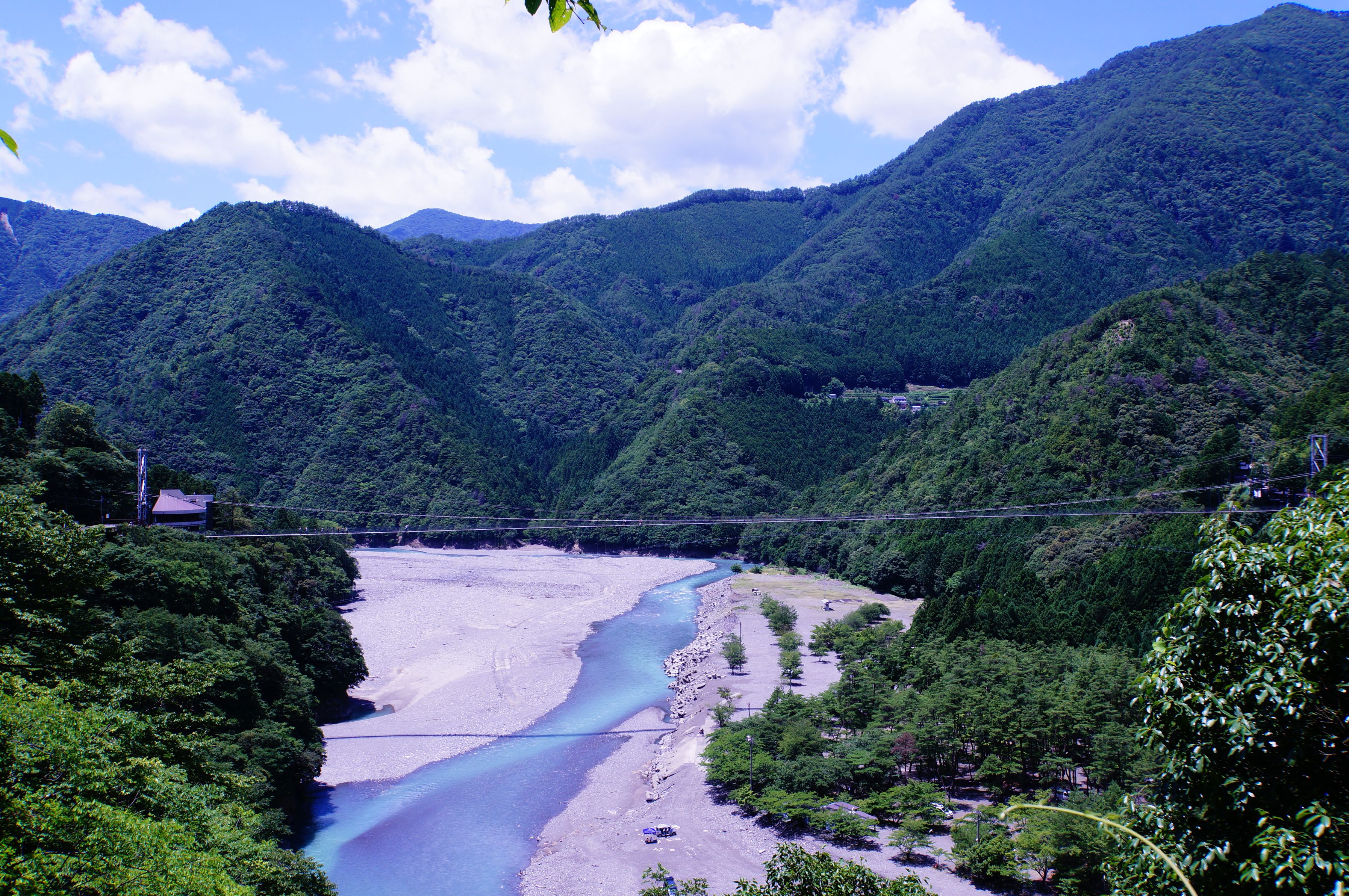 「20名以上乗ると危ない」って書いてある橋を渡っていると、言葉では表せない恐怖(バスで到着した団体さん)が押し寄せてきました。