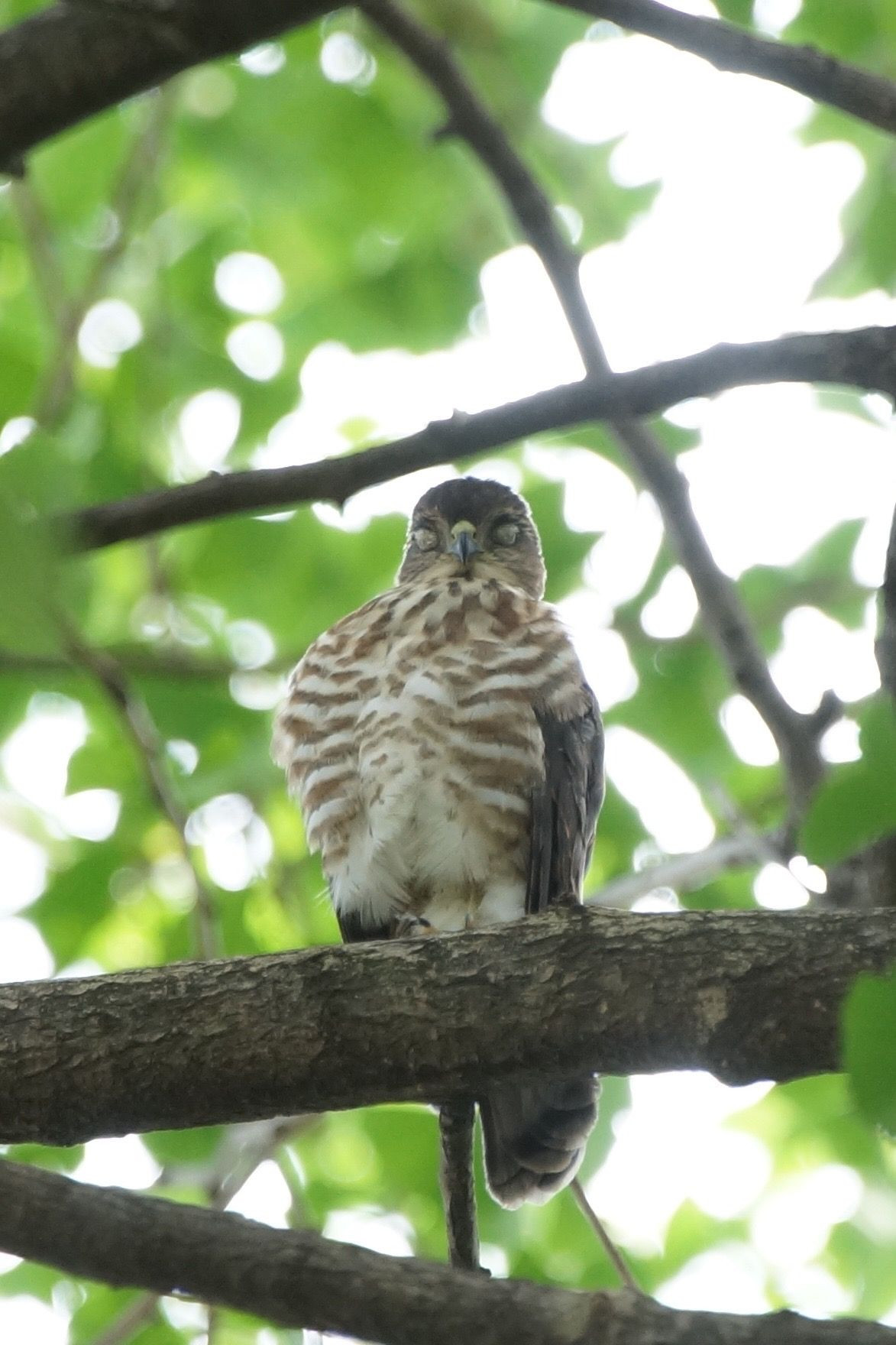 微笑んでいるのか、眠いのか ツミの赤ちゃん、巣立ちしたばかりです。