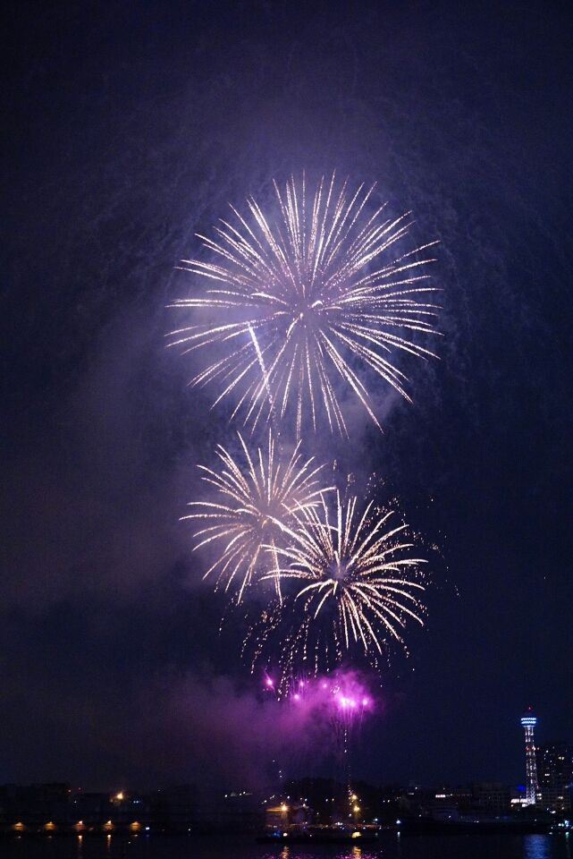マリンルージユ号に乗船して、スパークリングトワイライトを楽しみました。 遮るものがない、海からの眺めは最高の一時です(//∇//)。 デッキスペースのベストポジションは、ビュッフェを楽しんでいる間に… 埋まってしまい出遅れてしまいました(;^_^A。 思い切って、手持ち&標準レンズにて撮影チャレンジ! ISO高く設定し過ぎてしまい、若干画質が粗めでした(つд`)。