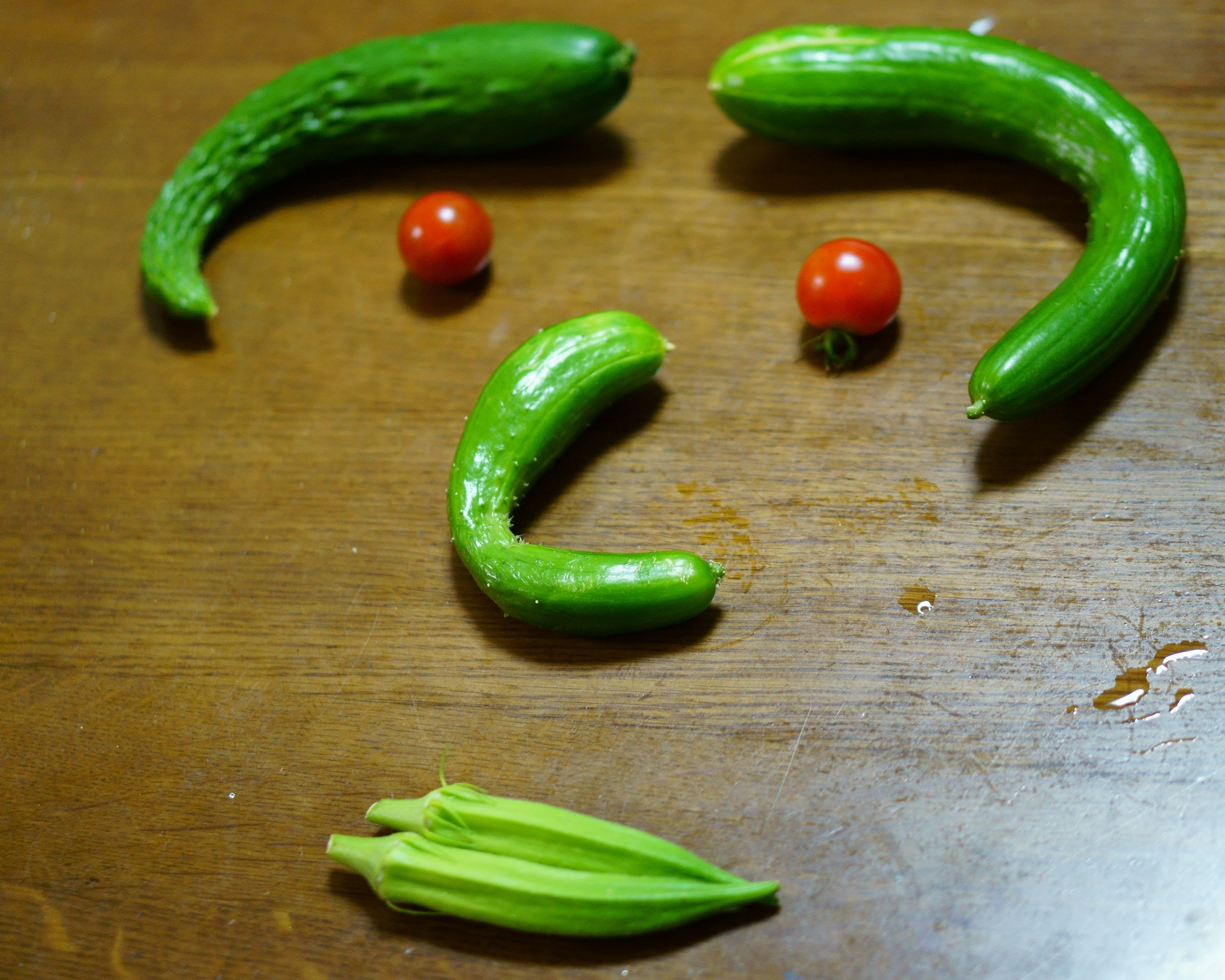 キューリの収獲は最盛期を過ぎ、曲がってきた。 眉毛と鼻にどうかしらね。