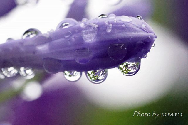 雨の日はしずくの中に映る世界に魅せられます。 マクロの目を楽しんでいます。