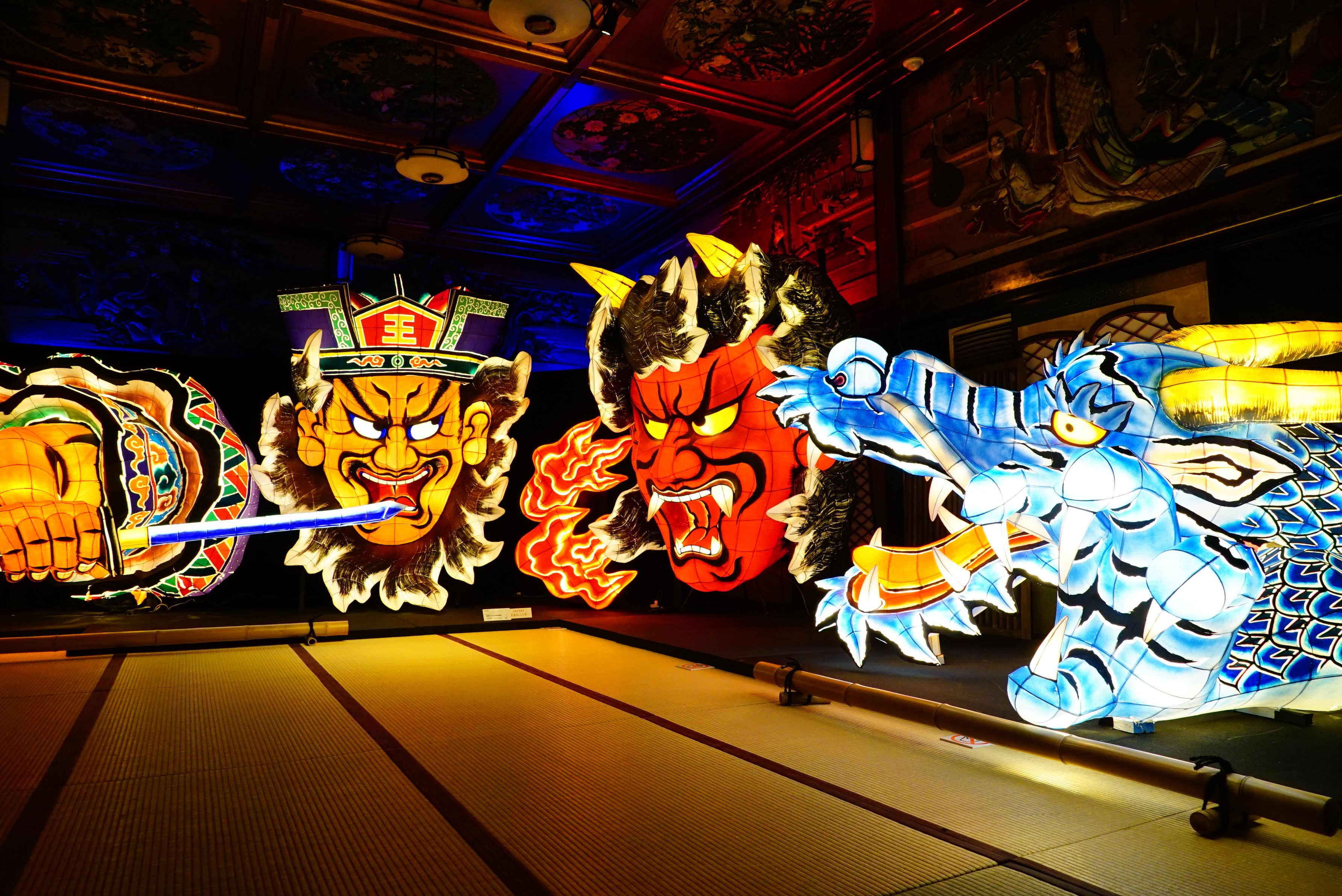 匠の造り上げた芸術的な木造建築。 和室に飾られた大迫力のあかり、心動かされる時間でした!