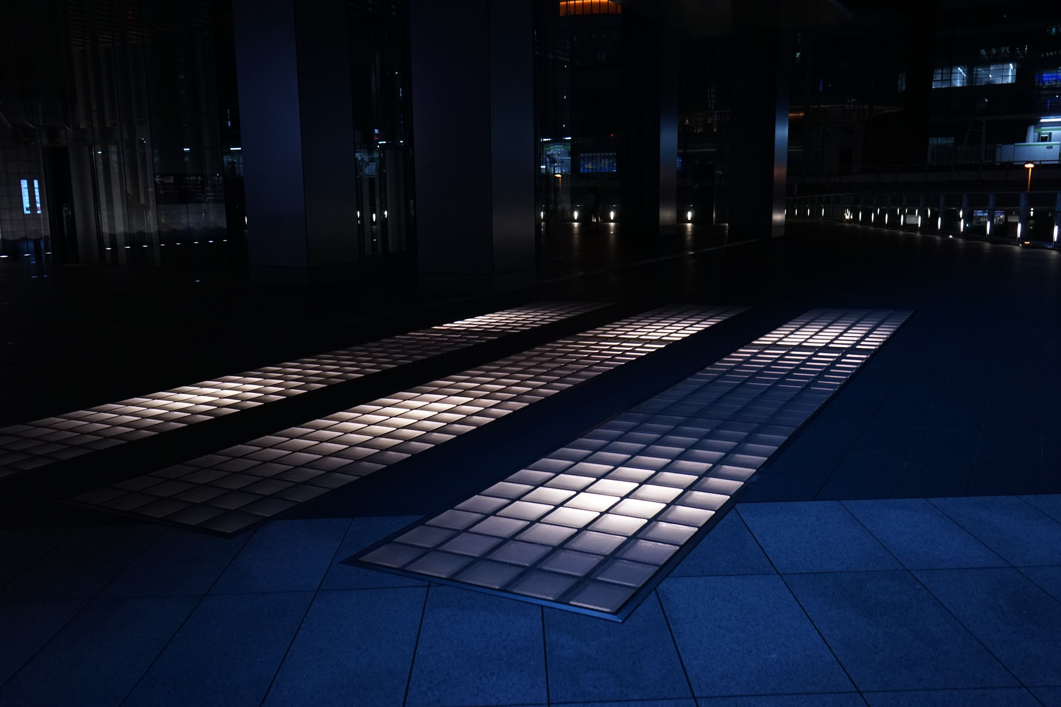 会社帰りにふらっと立ち寄った駅ビルの地面に埋め込まれたライトが、思いのほかきれいでシャッターを切りました。ささやか過ぎるシーンですが…。