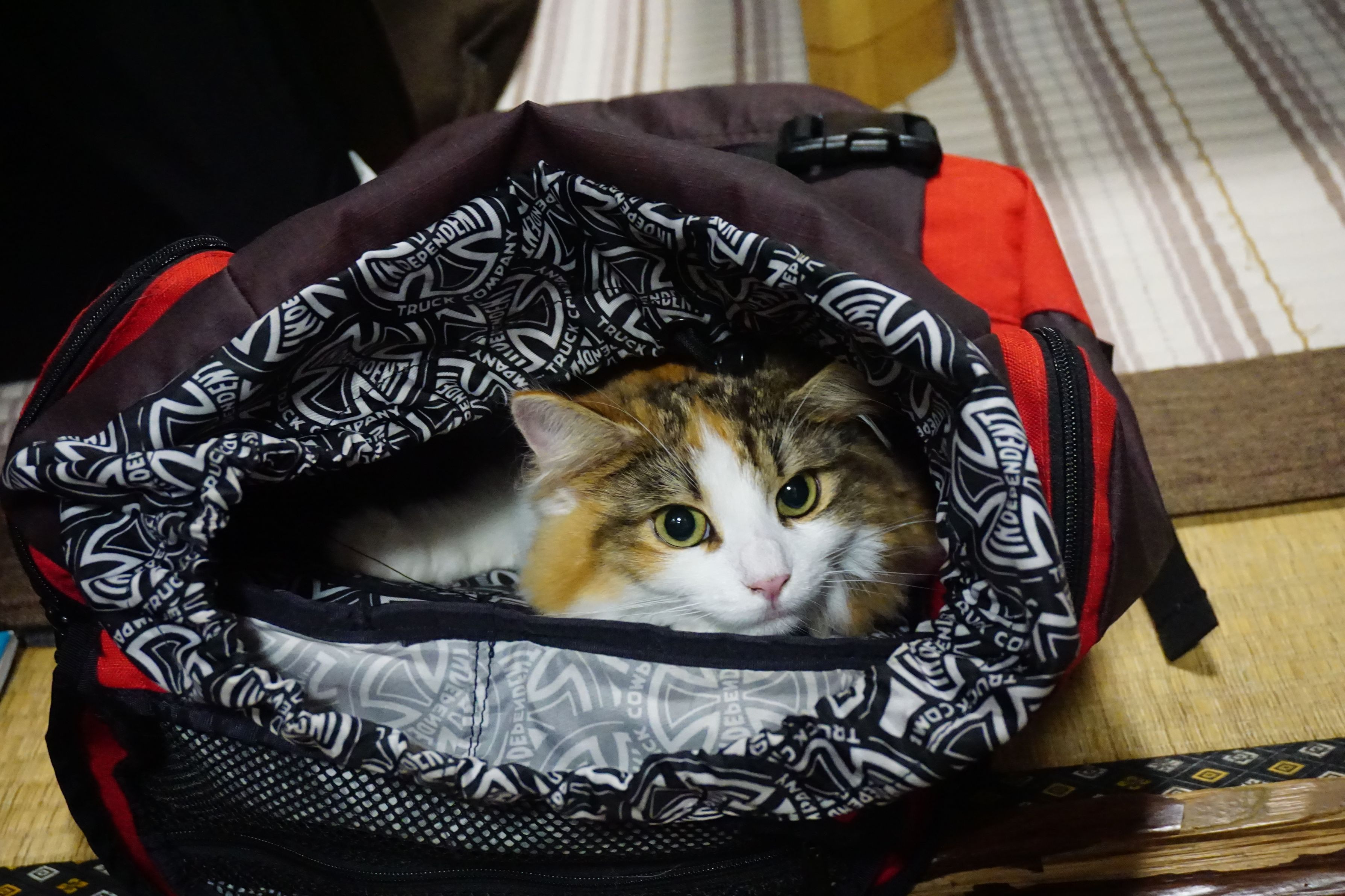 なぜか、このリュックにはすごい勢いで突っ込んで行きます! よほど居心地がいいのかな?
