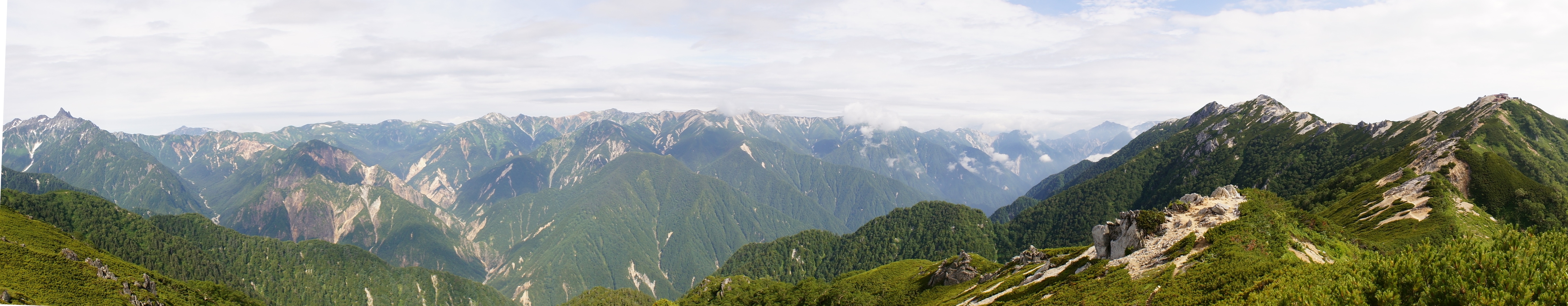 ★画像をクリックしてみてください★ 左端のとんがっているところから槍ヶ岳(3180m)笠ヶ岳(2898m)樅沢岳(2754m)双六岳(2860m)黒部五郎岳(2840m)鷲羽岳(2924m)赤岳(2910m)水晶岳(2986m)・・・・・・と立山(3015m)・・・燕岳そして燕山荘いろんな山が見えています。