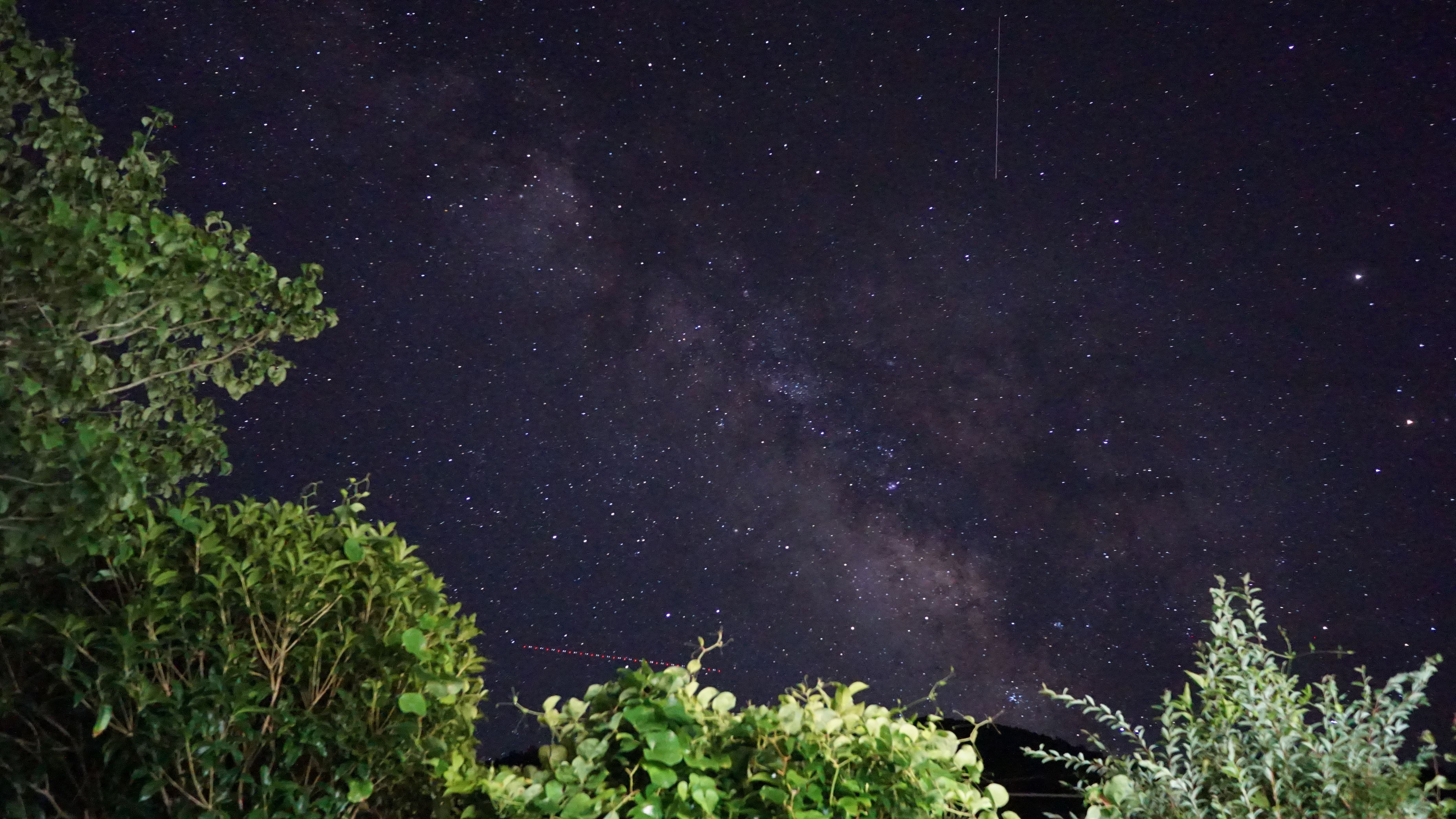 夜空にぼんやり天の川が見えたので撮影。 三脚がなかったので、地面に直置き。