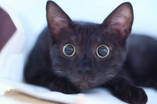 紙袋に入ったワルツとタンゴの目が・・丸い! 大きな目に、大きな瞳だね~。