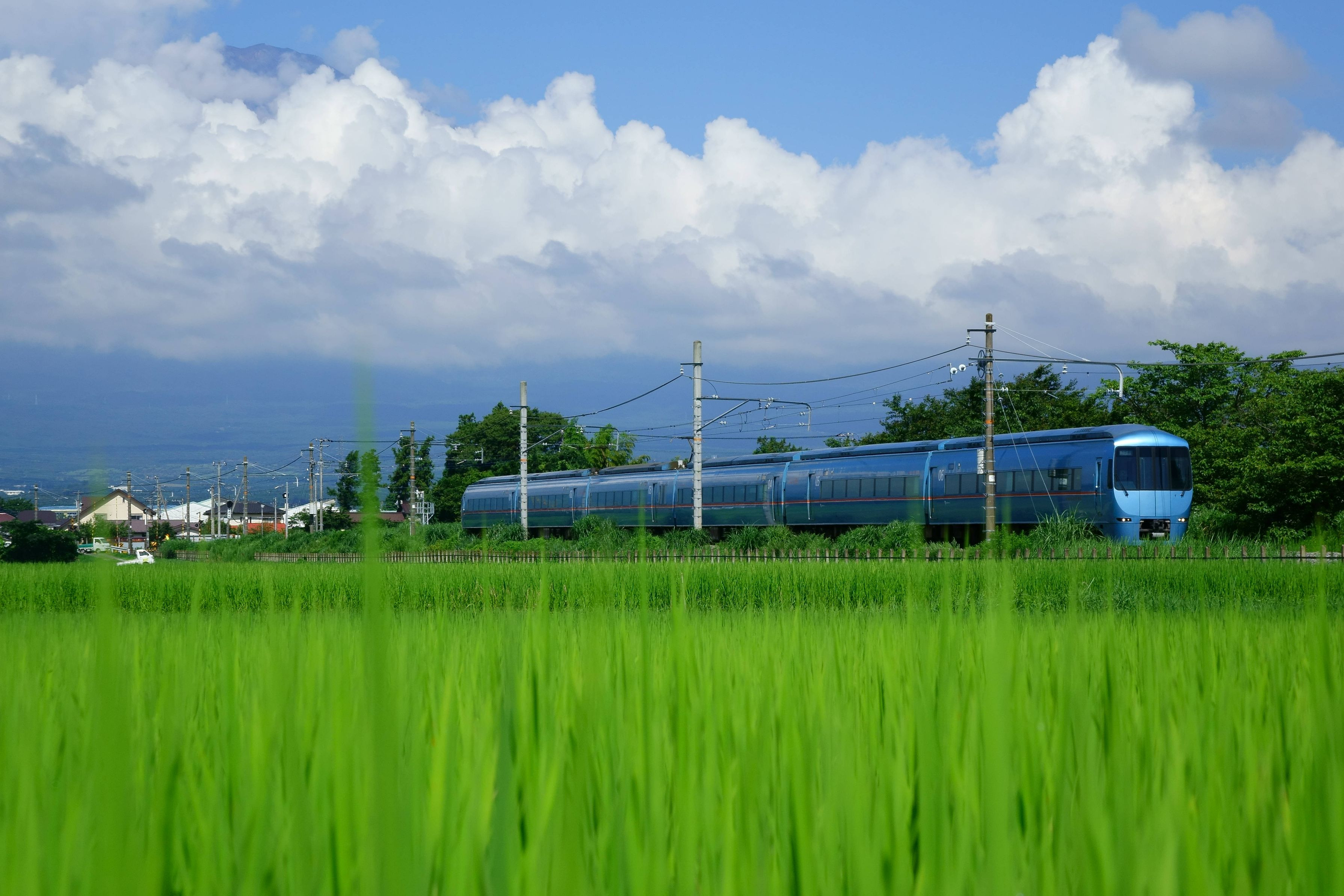 特急あさぎり(60000形MSE)が稲穂が出始めた田園地帯を気持ち良さそうに疾走。