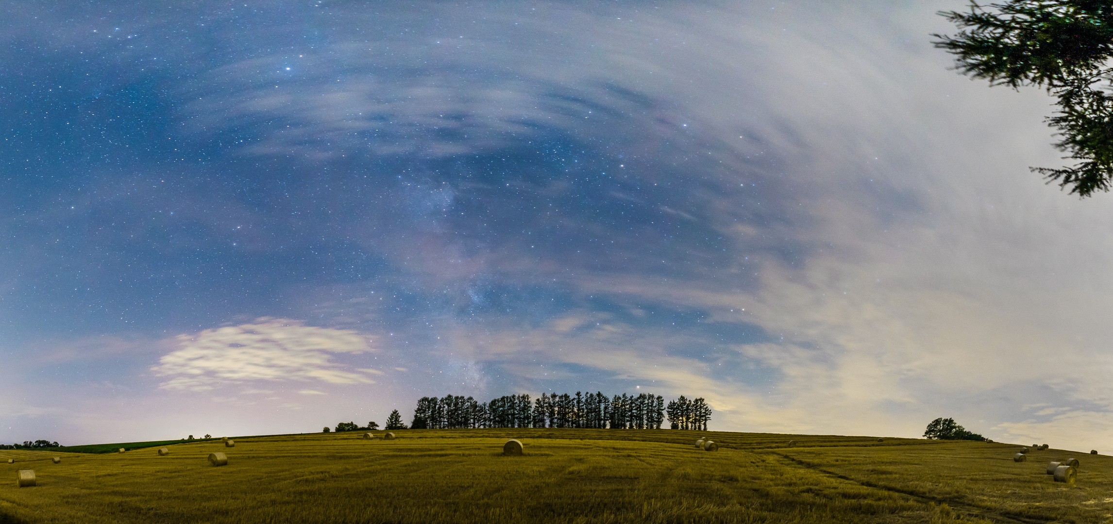 雲が沢山だったよる。 木々の向うに少し輝きがみえた。 すると雲が晴れ。天の川が顔をだしました。