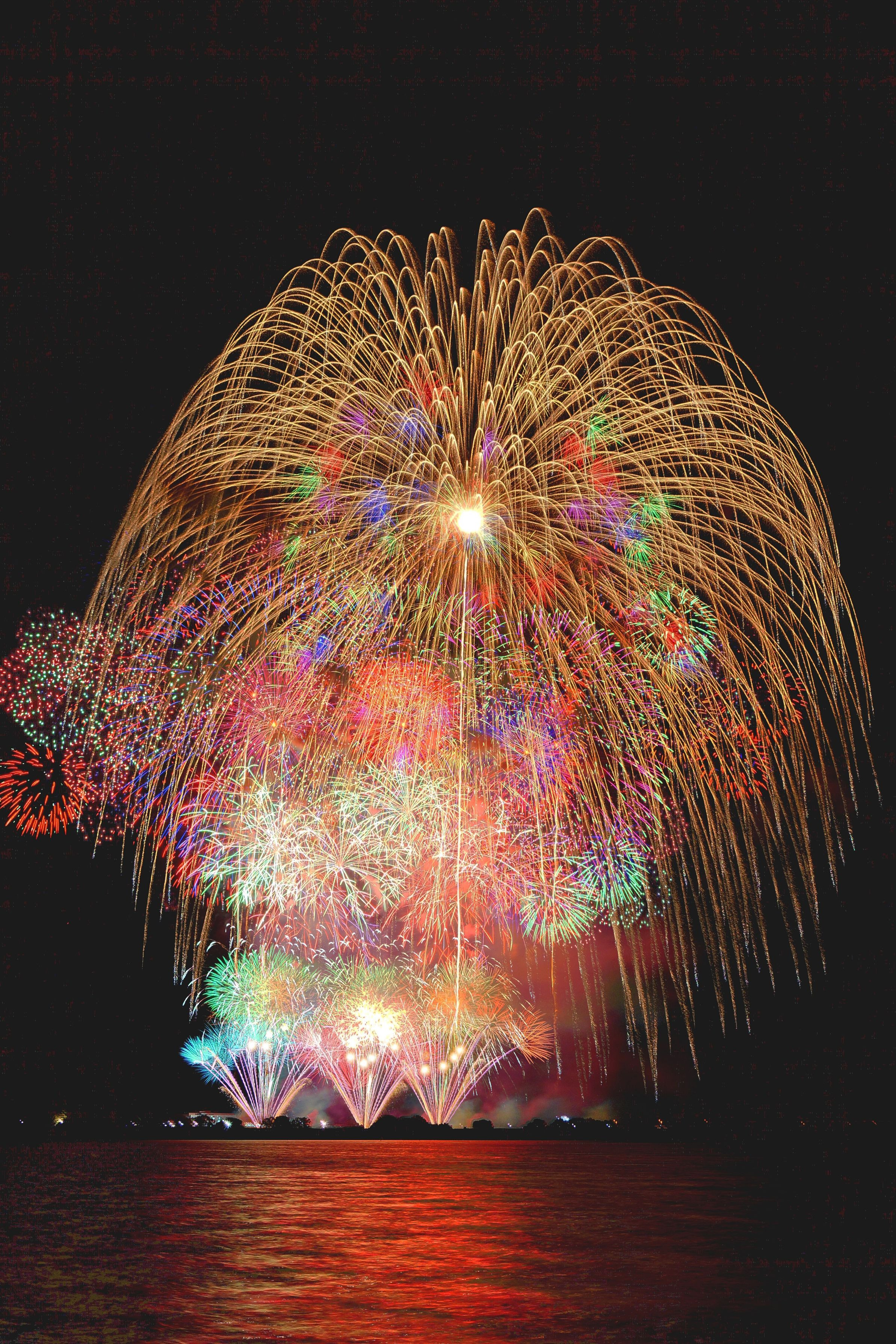 谷中湖畔から3尺玉と特大スターマイン