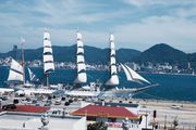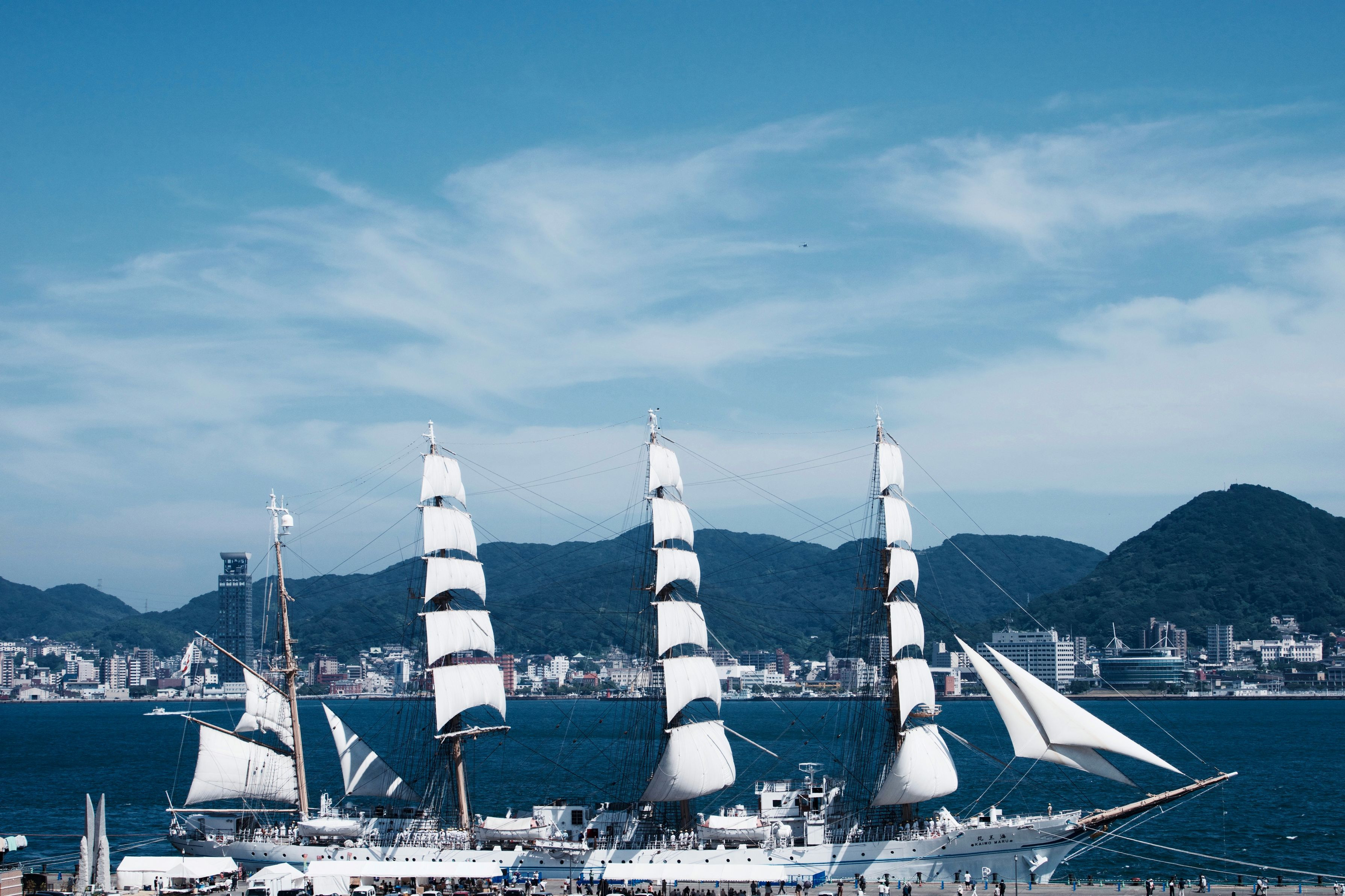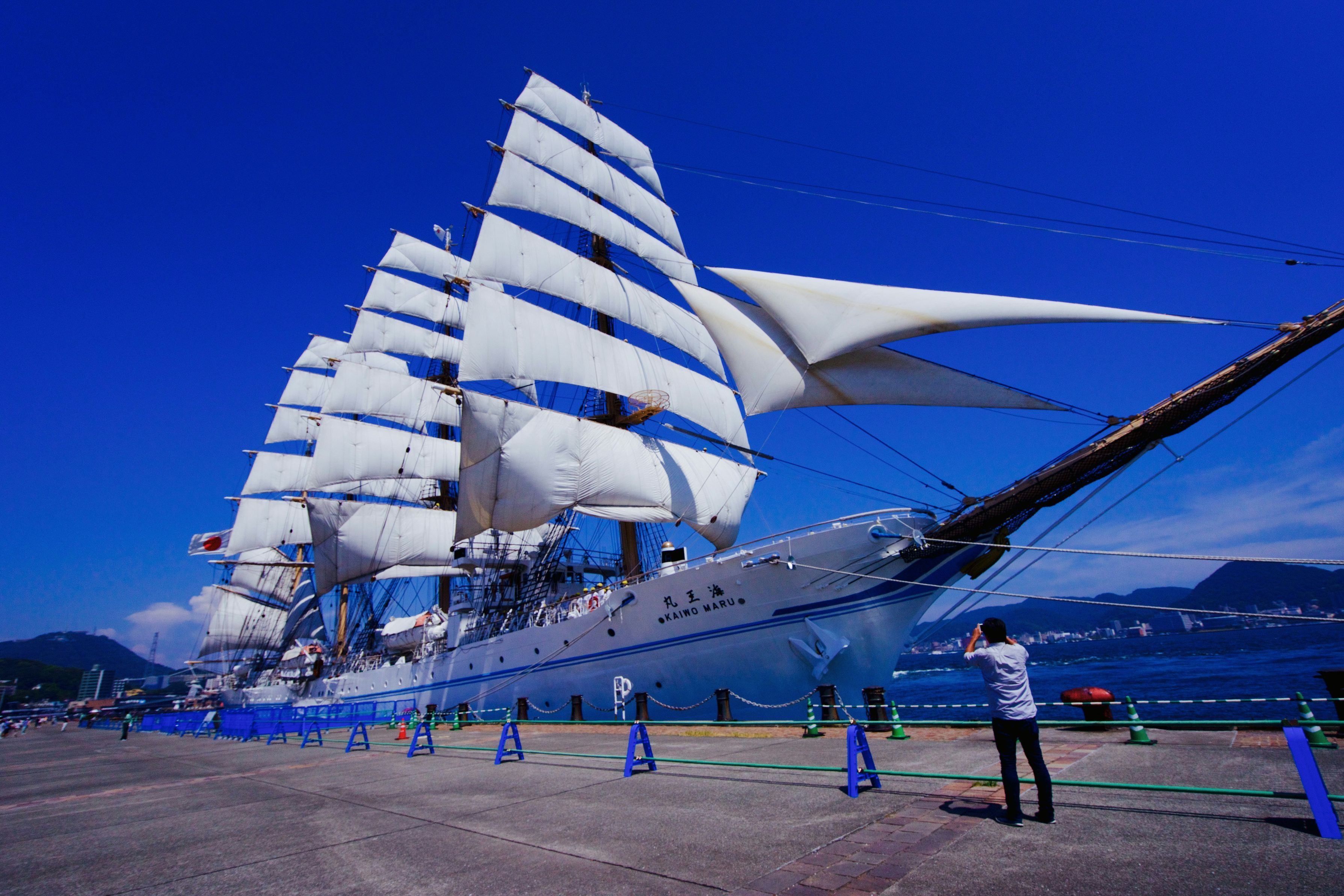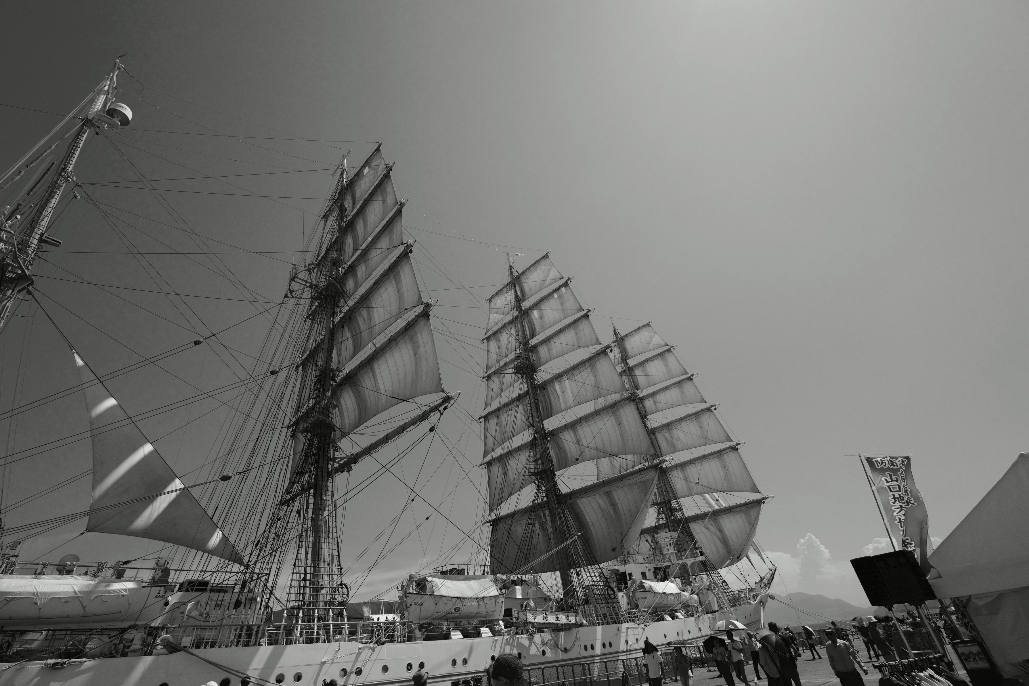 午後1時に始まった、帆を張る作業は1時50分に終了。