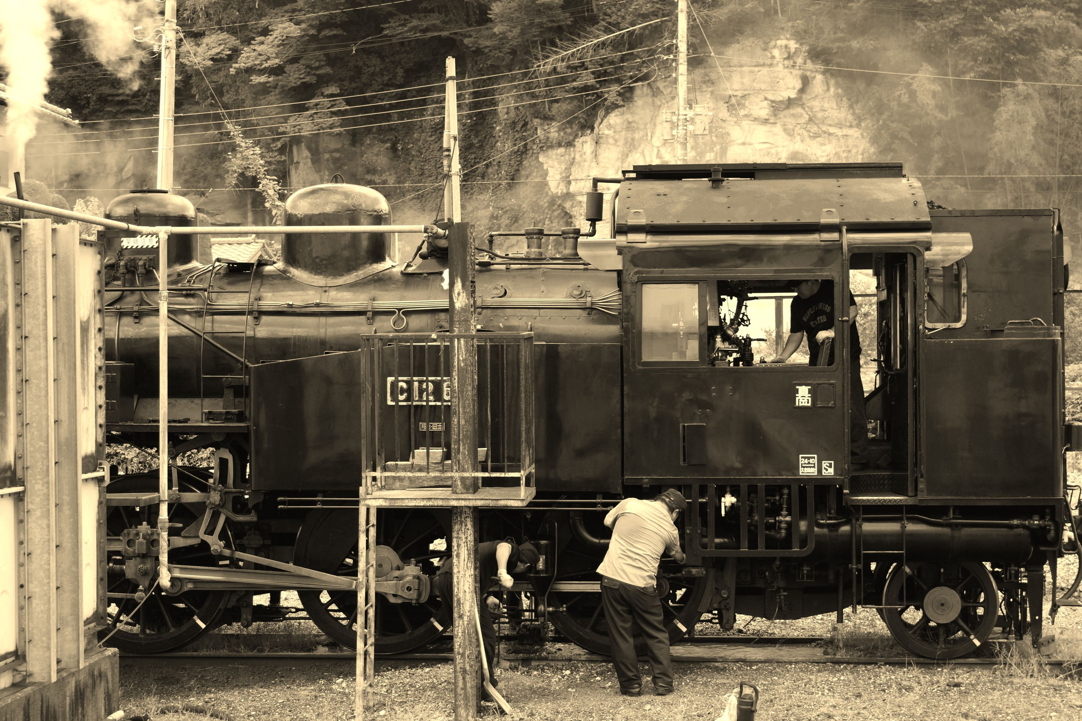 先日、真岡鉄道で撮ったものです。猛暑の中、汗ダクで、点検作業していました。
