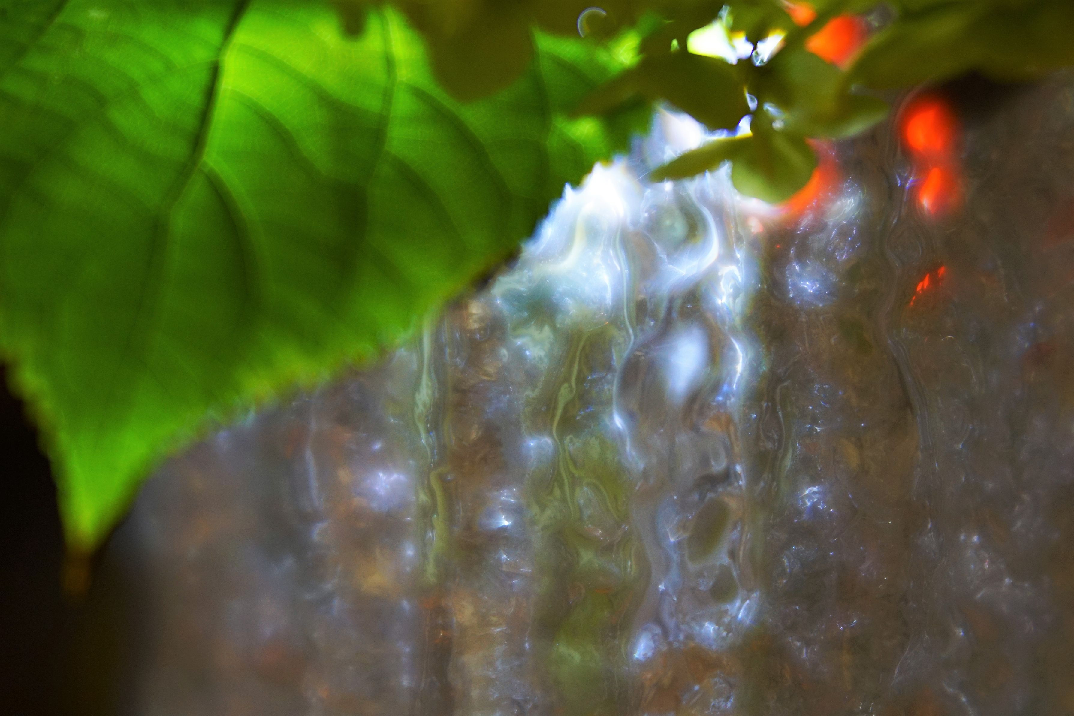 ガラスの花瓶にはっぱをいれて。