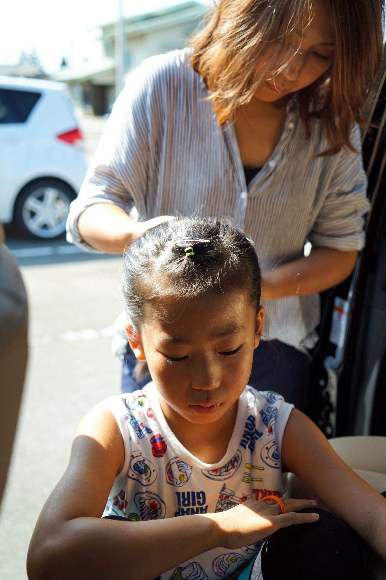 ダンスの練習に向かう娘。 父さんも髪を結ってあげれればなぁー(-_-)