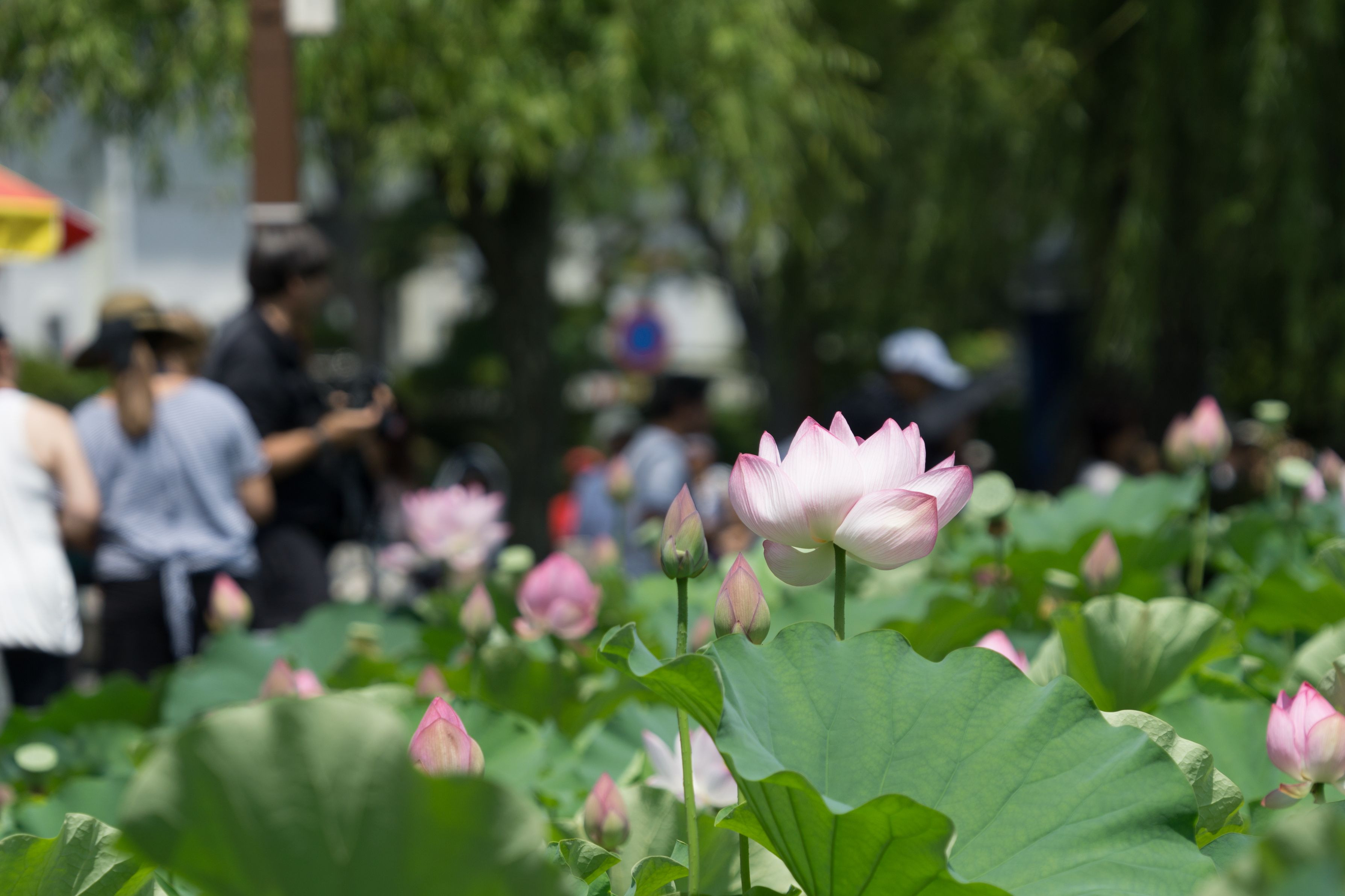 地元の公園に蓮が咲いています。 外国の方もたくさんいました。