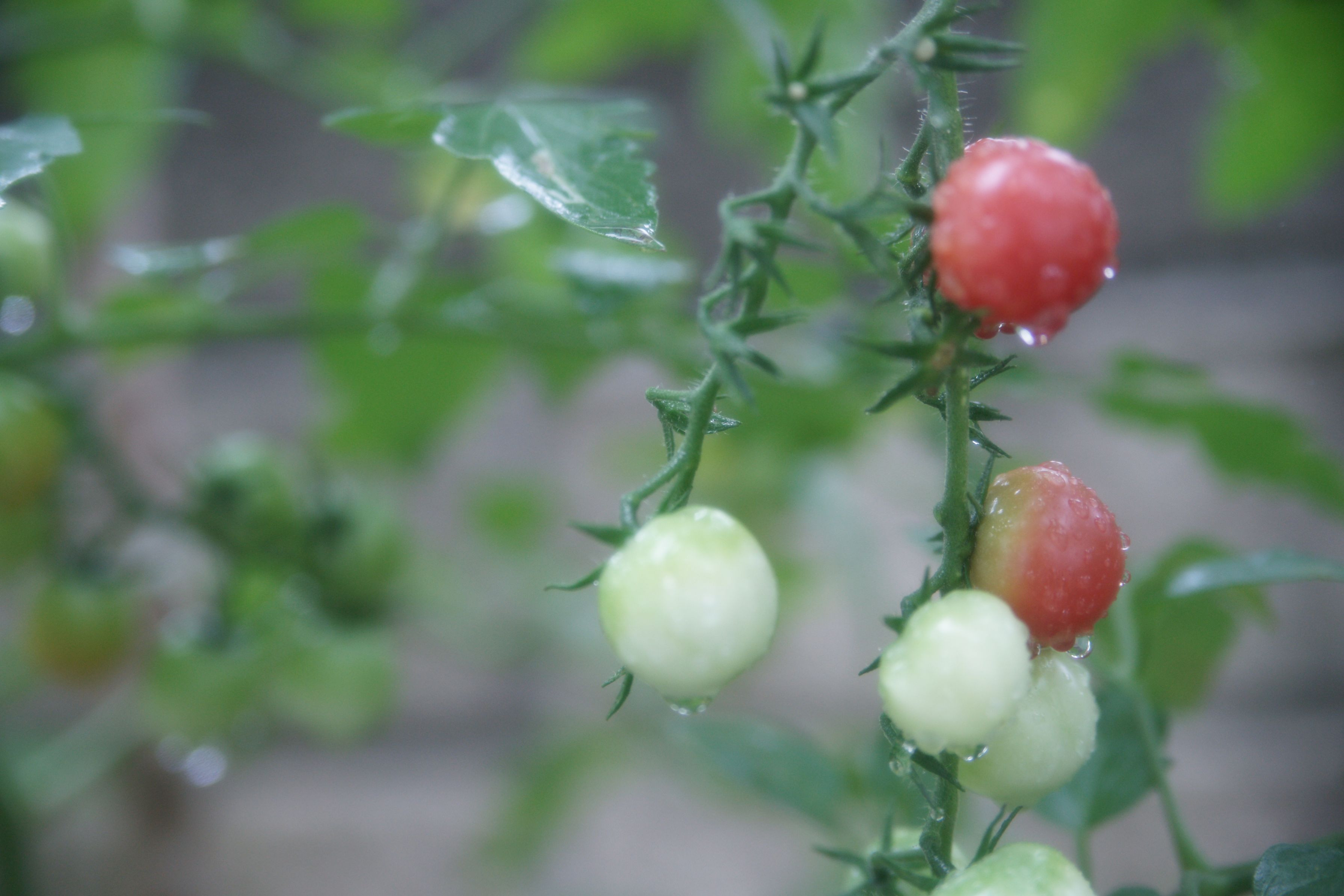 朝、外に出ようとしたらミニトマトが赤く染まりかけていたが目に留まった。