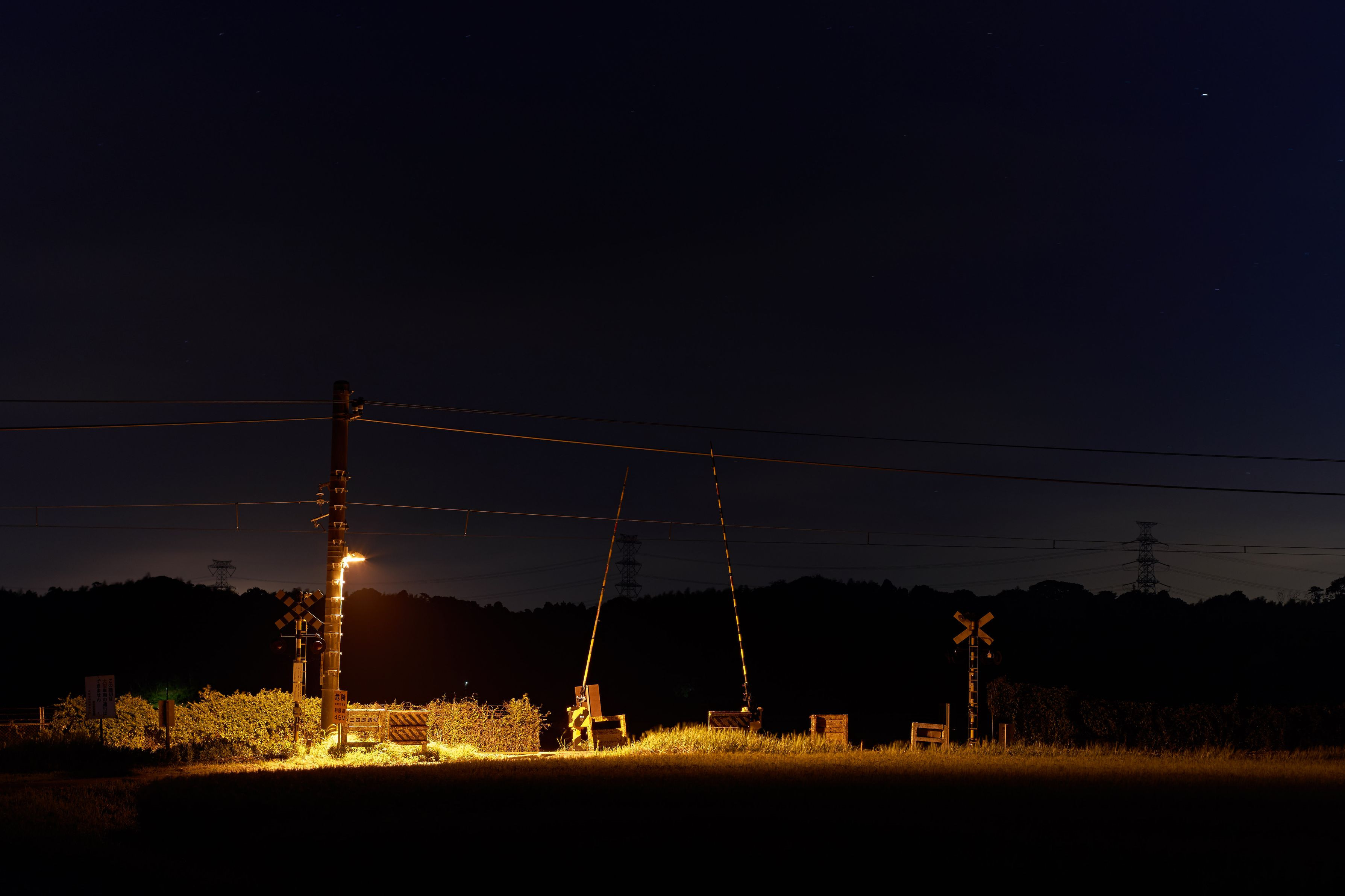 ヤッパリ夜景撮影は楽しい・・て? 我が家の周りで夜景を撮れる所と言えば・・ 踏切かイチゴのハウス位(涙) イチゴは今時期じゃないし、何時もの踏切を撮るしかないね~。