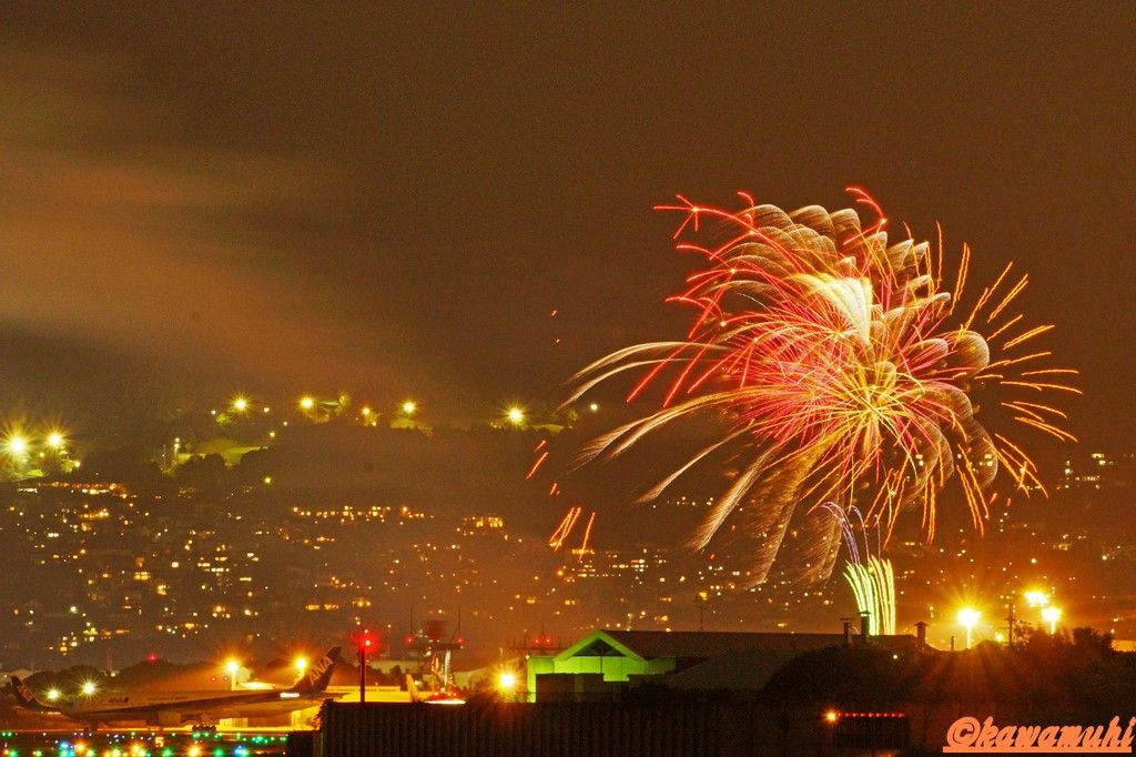 昨日行われた、兵庫県は猪名川の花火 伊丹空港を挟んだ千里川より撮影しました。 ハンガー左にはJA8197が止まっていました。 B777-200 日本での就航が一番早かった777はゆっくりと羽を休め翌日帰らぬ旅へ 出発します。 そんな彼(彼女?)は最後の花火をどんな気持ちで見ていたのか。 おつかれさまでした。