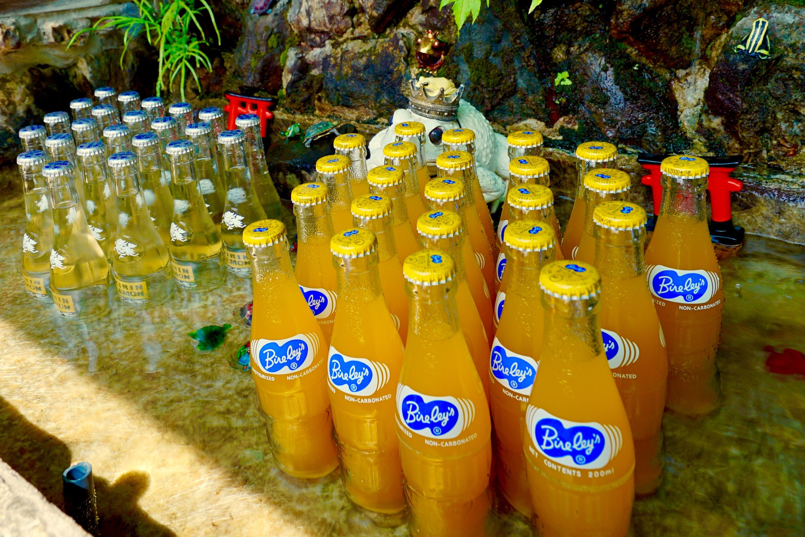 山の上で湧き水で冷やしてあるとついつい飲みたくなりますよね。 ただ変なカエルの置物などは要らないと思いますが。