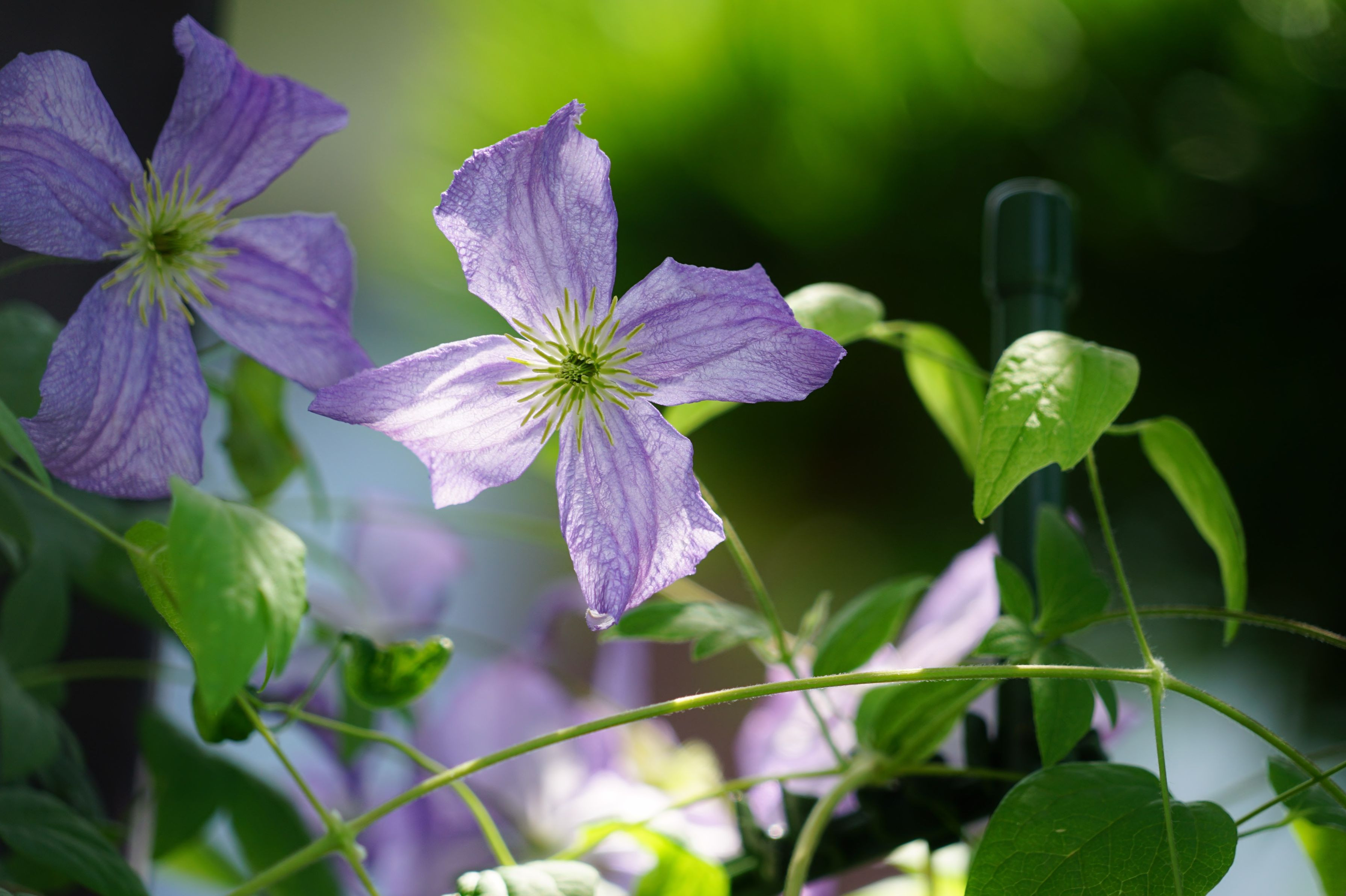クレマチス・エミリアプラター 剪定後の二番花が咲き始めました♪ 厳しい暑さの中ですが、元気に咲いてくれました(*˘︶˘*)