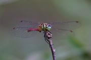 マイコアカネでしょうか? 暗過ぎない日差し多めの林に住んでいました。 少し小柄で赤い胴と青い顏が可愛いトンボでした。