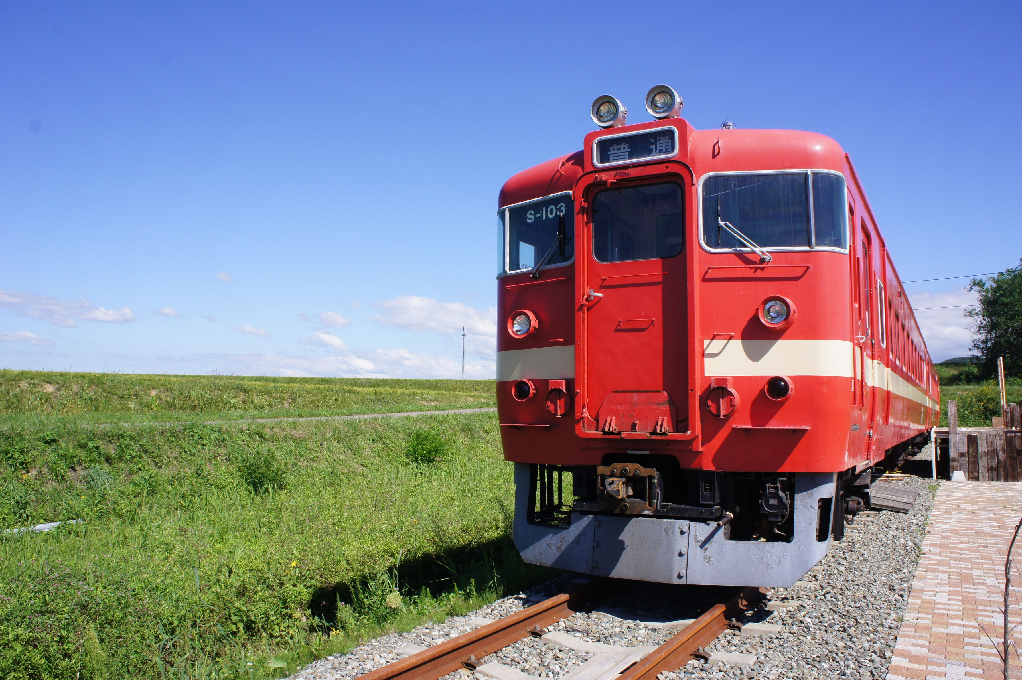 北海道のレストランの横にあったオブジェですが、台風が去ったとの青空にあまりにも映えていたので撮ってみました。