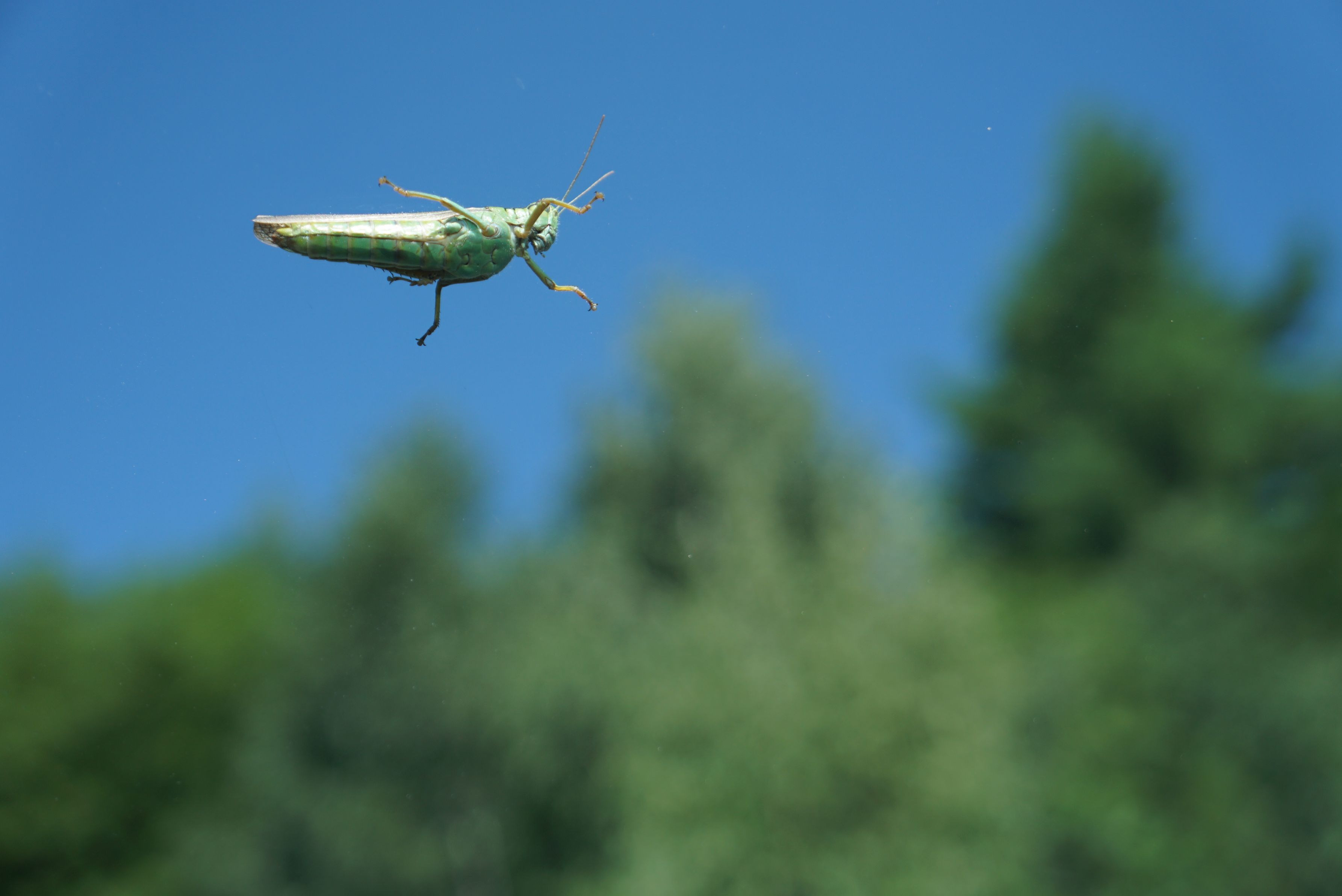 面白い写真が撮れました。 車のフロントガラスに乗ったバッタを助手席からそのままカシャッ。 ちょっと飛んでるみたいでしょうか?