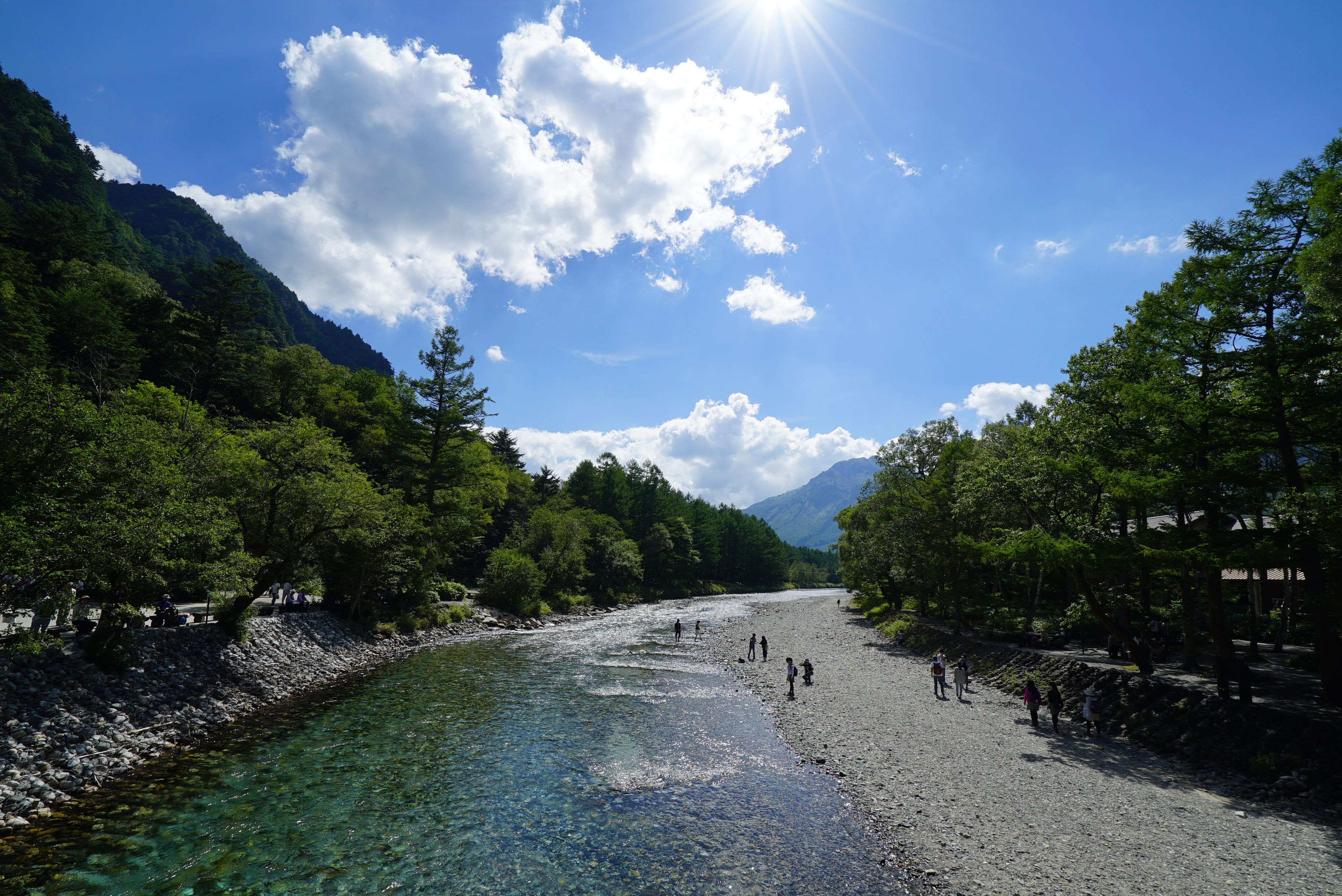 上高地の河童橋から下流側をのぞむ